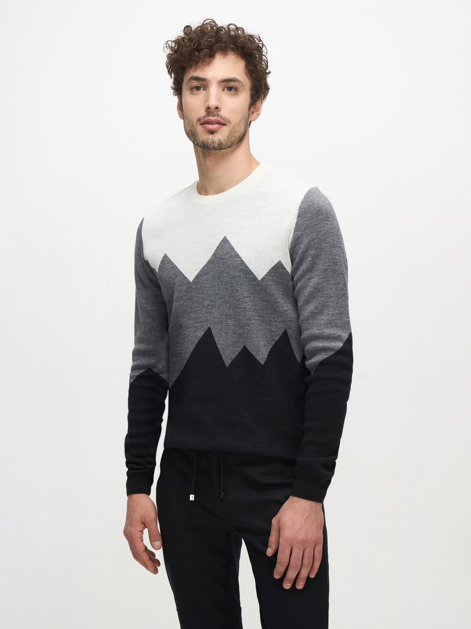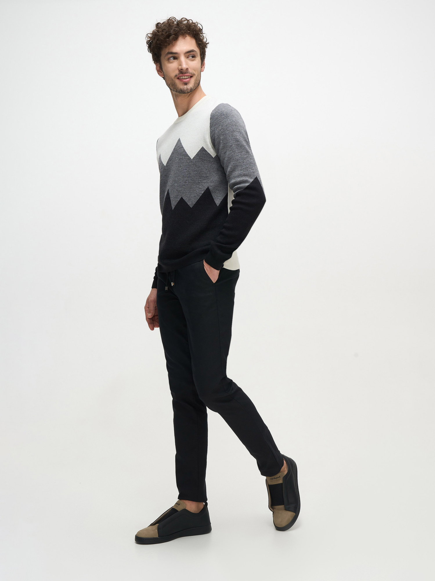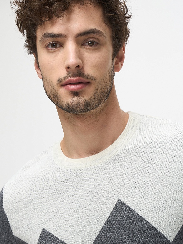 Джемпер Cacharel из смесовой шерсти — с выразительным графическим рисунком. Контрастное сочетание оттенков создаёт динамичный акцент, сохраняя сдержанный и стильный характер изделия.
