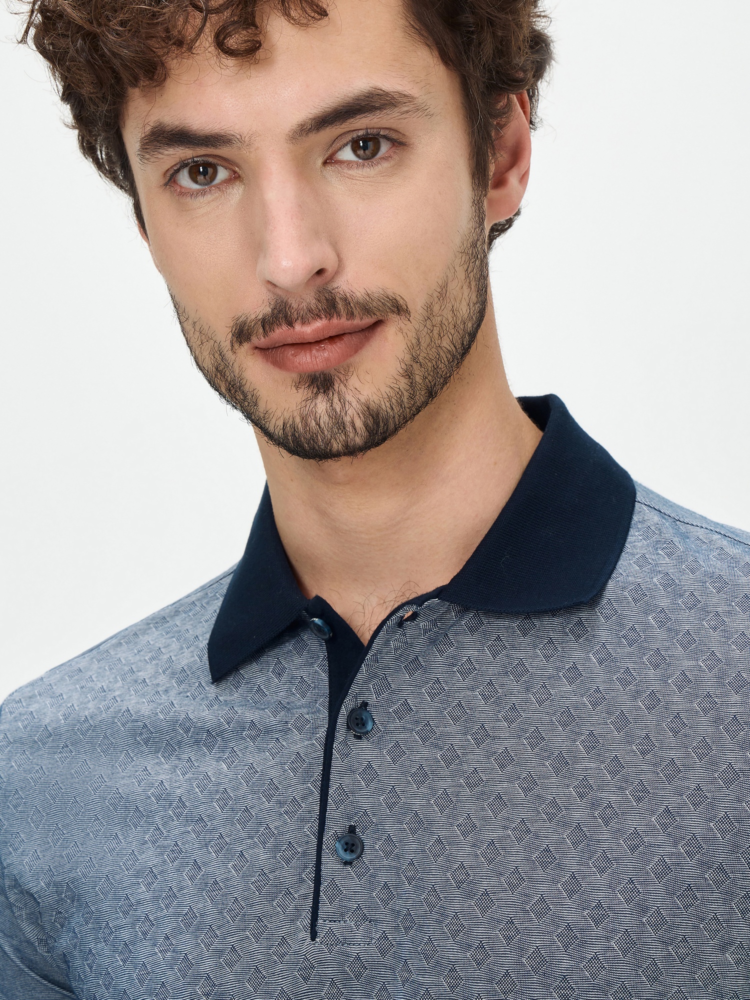Футболка-поло Cacharel из трикотажного материала с жаккардовой фактурой и геометрическим узором по всей поверхности. Контрастный воротник-поло с пуговицами подчёркивает аккуратный и современный характер модели. Декоративная окантовка добавляет выразительный акцент и визуально выделяет зону воротника.
