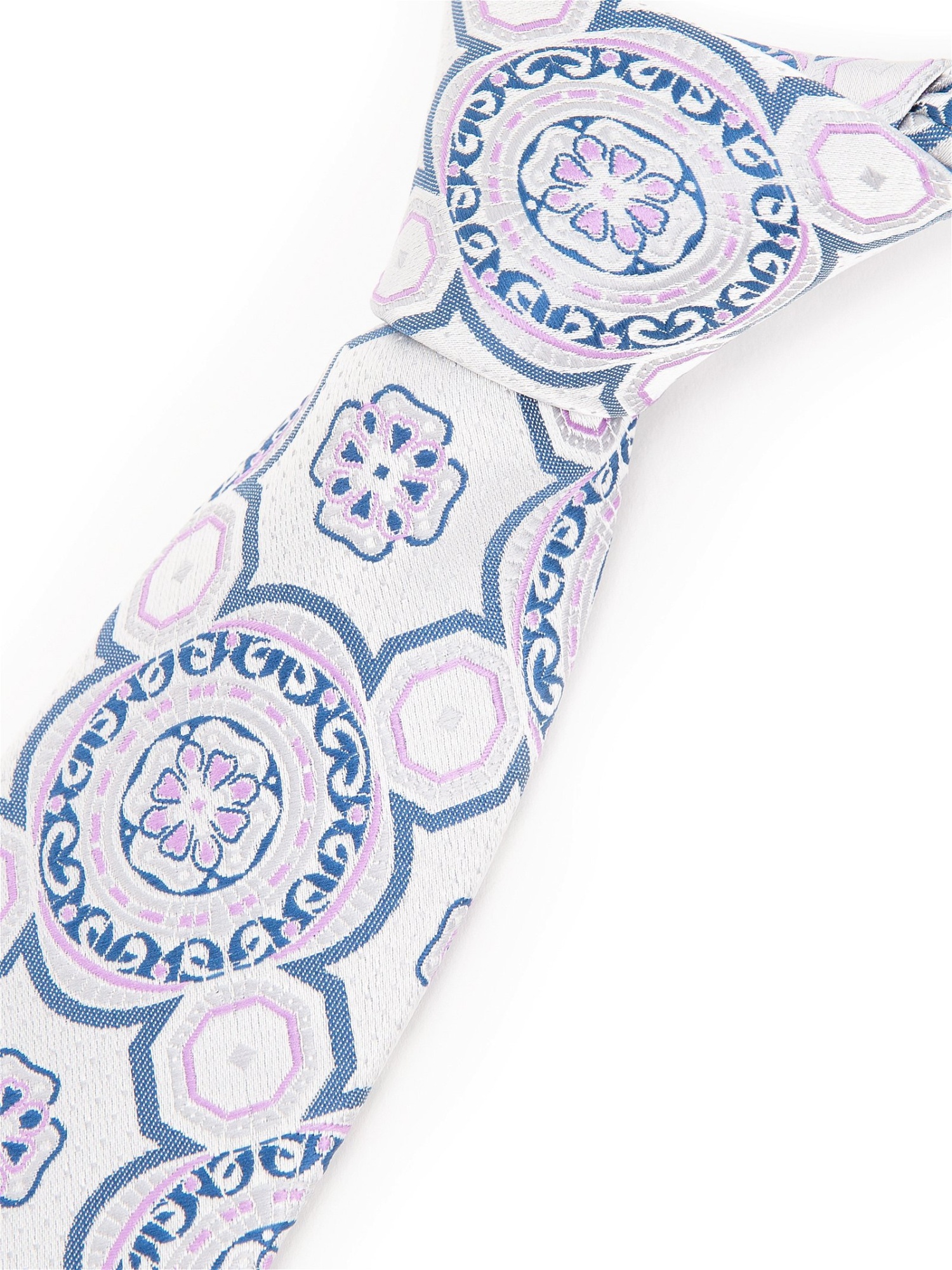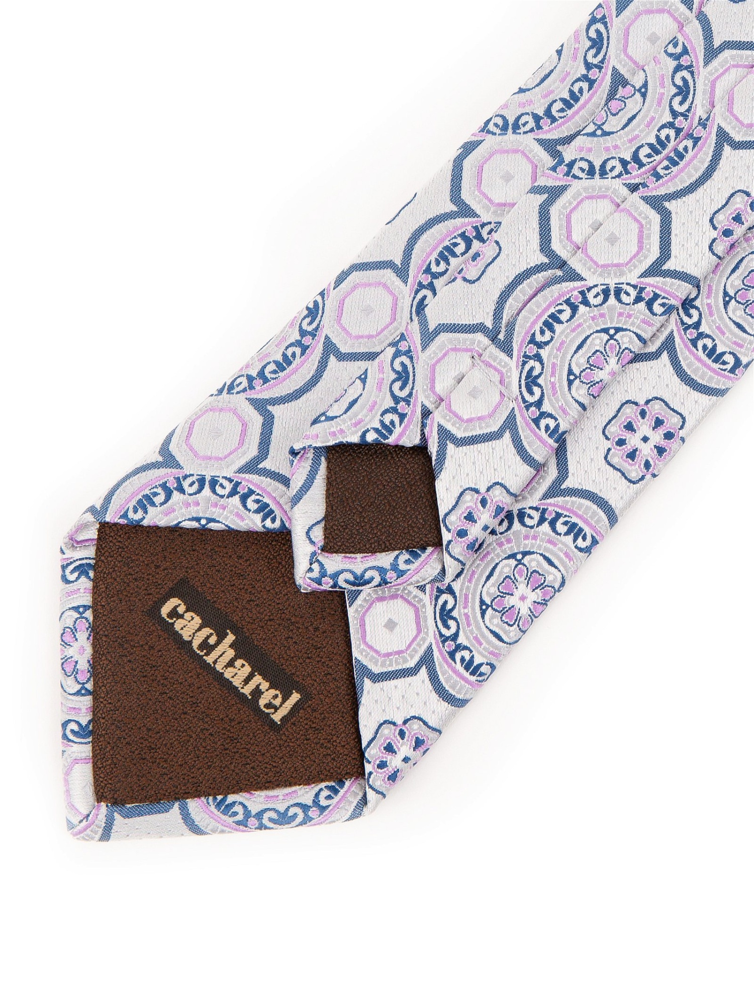Жаккардовый галстук Cacharel — из плотной жаккардовой ткани с рельефным плетением, которая хорошо держит форму. Дизайн дополнен орнаментом по всей поверхности.