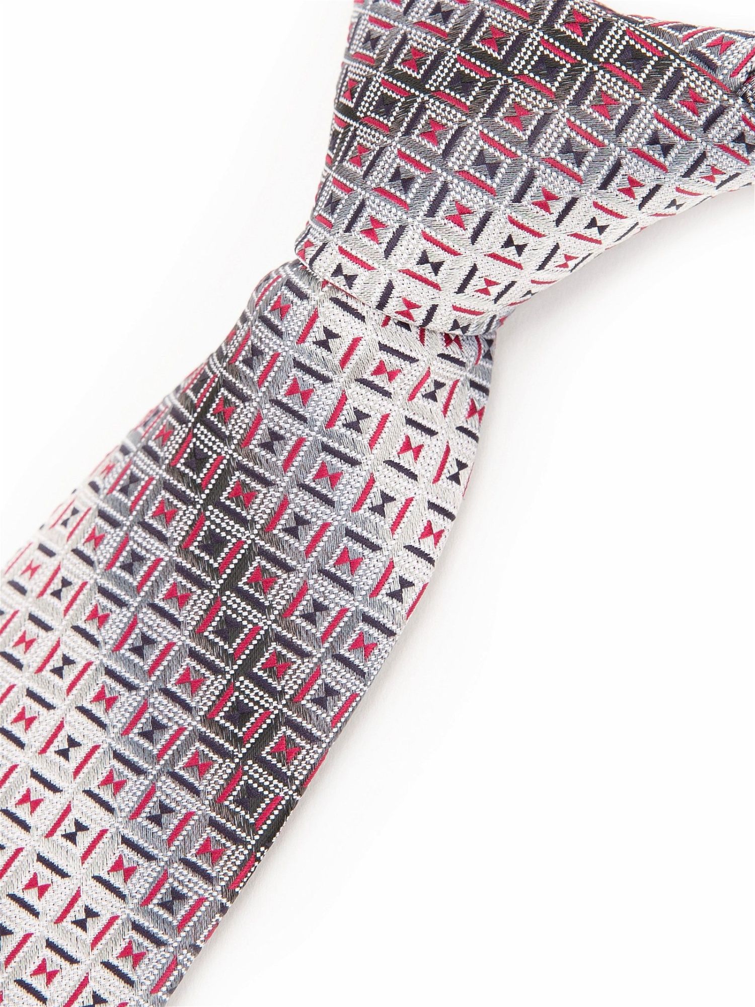 Жаккардовый галстук Cacharel с узором — элегантный аксессуар с выразительной фактурой. Выполнен из плотной жаккардовой ткани с рельефным плетением. Дизайн дополнен геометрическим узором по всей поверхности, подчёркивающим стиль изделия.