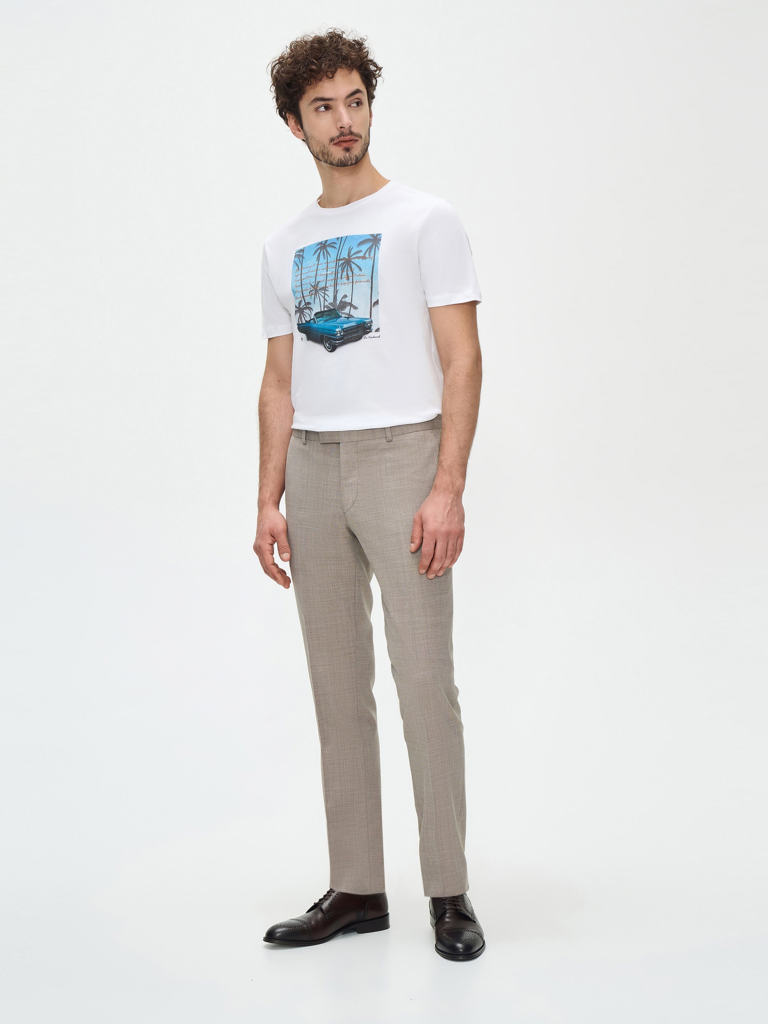 Зауженные классические брюки Cacharel — из смесовой шерстяной ткани. Смесовая шерсть сочетает практичность и комфорт при носке, сохраняя аккуратный внешний вид изделия. Зауженный крой формирует современную посадку и делает модель универсальной для классических образов.