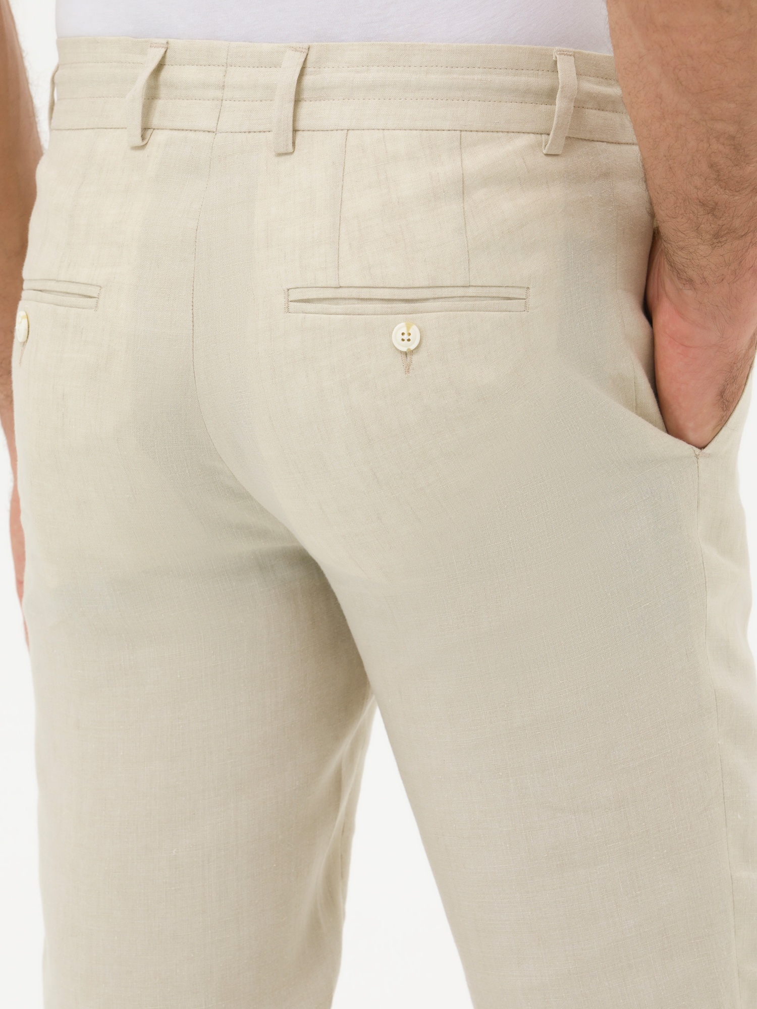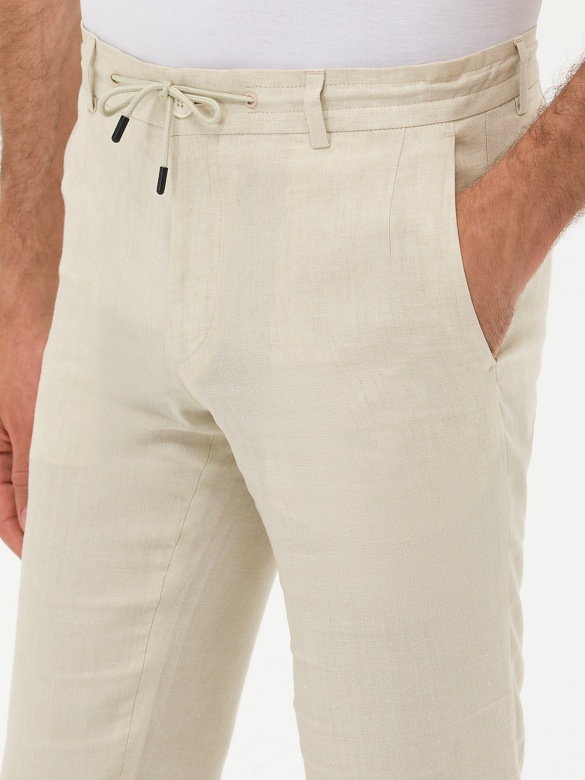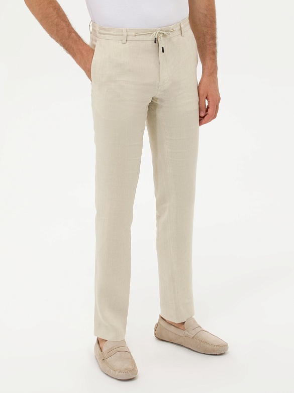 Зауженные классические брюки Cacharel — из льняной ткани. Натуральный лён делает материал лёгким и комфортным для тёплого сезона. Зауженный крой формирует современную посадку и сохраняет сдержанный классический характер модели.