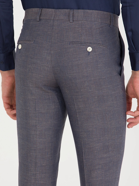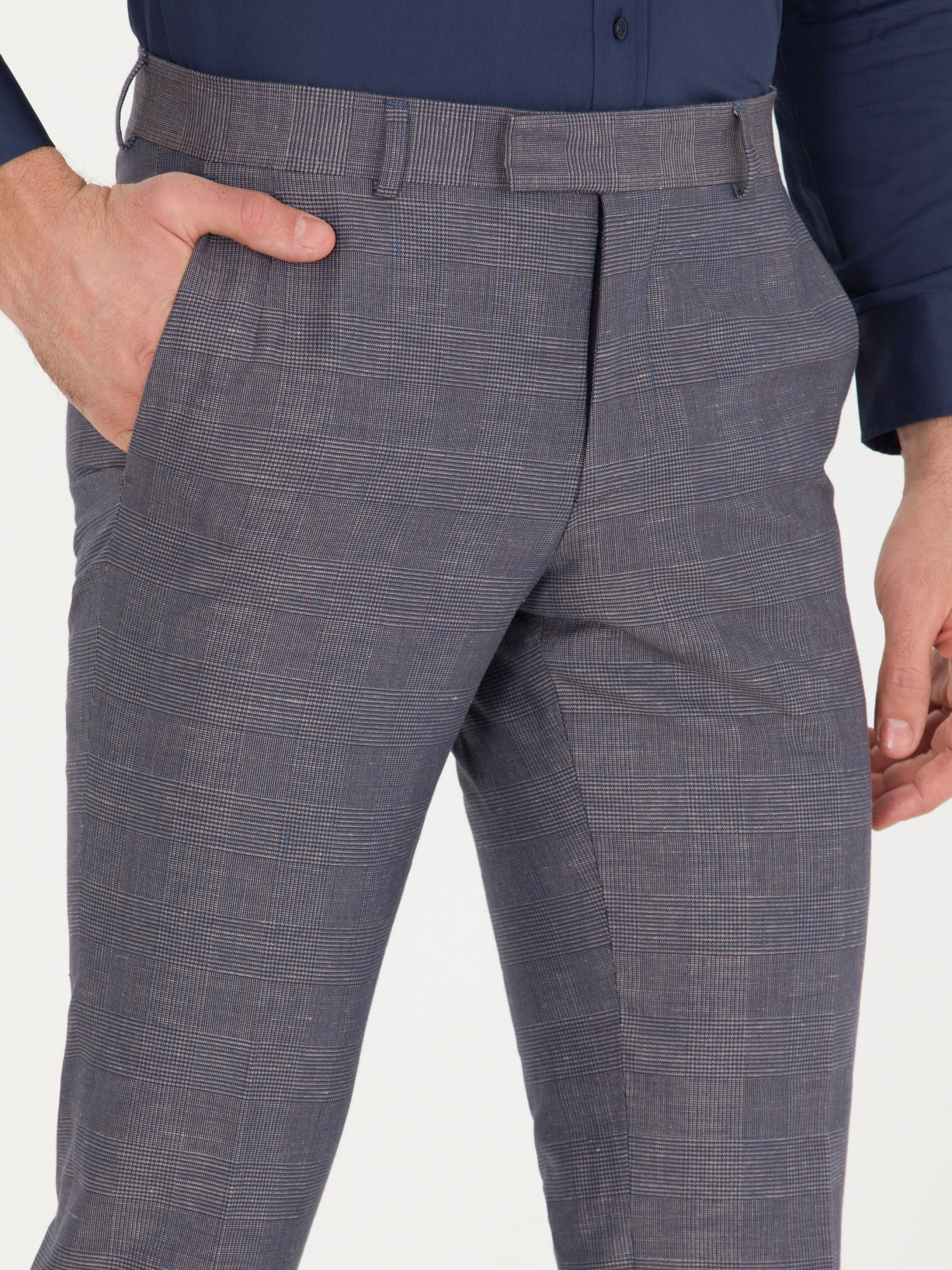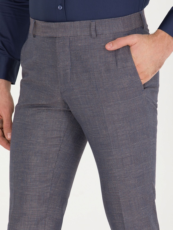 Брюки классические в клетку из смеси льна и хлопка зауженные от Cacharel — это идеальное сочетание элегантности и комфорта для современных мужчин. Эти брюки выполнены из высококачественной ткани, содержащей лен и хлопок, что обеспечивает дыхание материала и легкость в носке, особенно в теплую погоду.