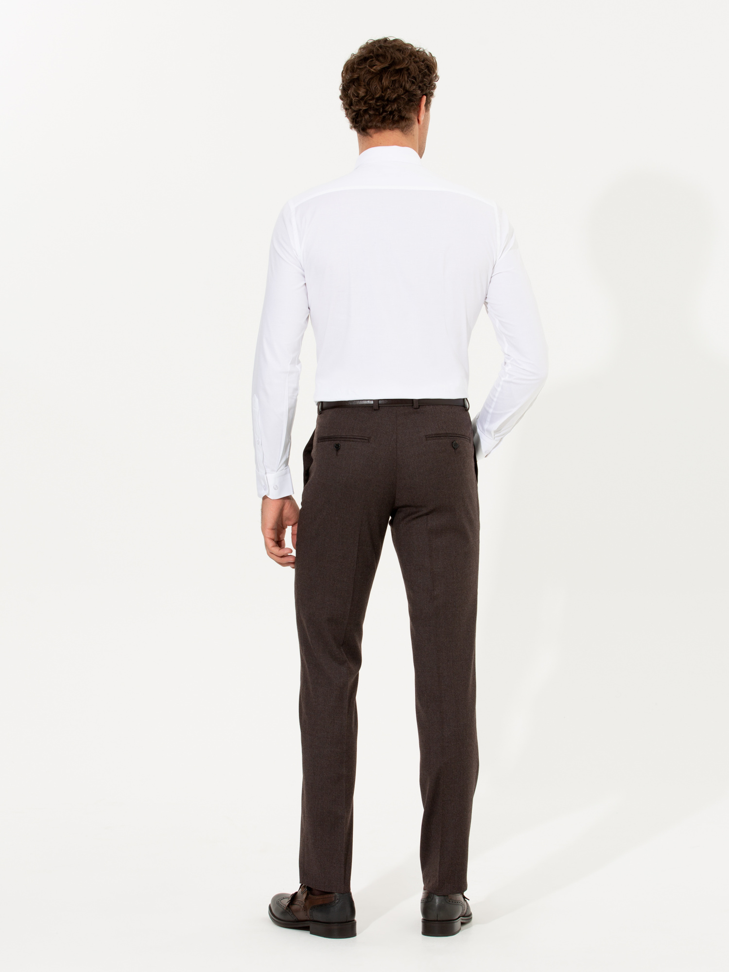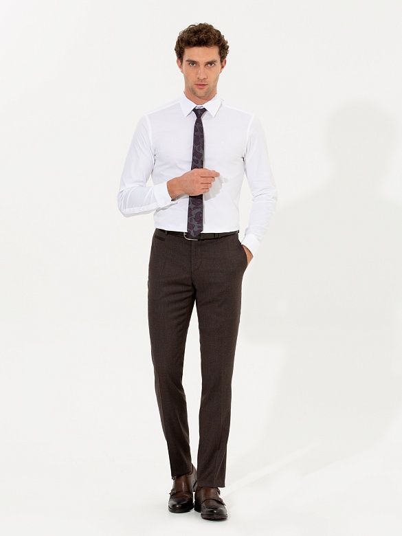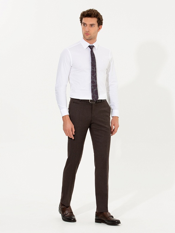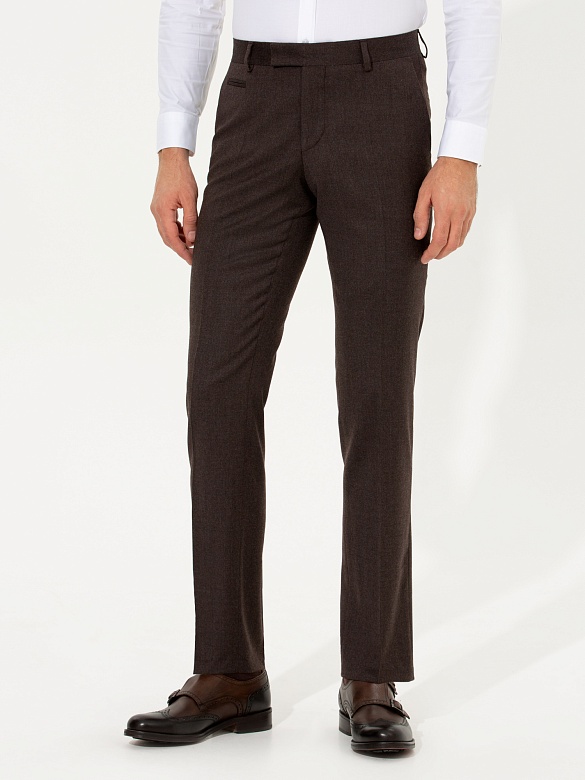 Изготовленные из высококачественного шерстяного материала, они обеспечивают комфорт в носке и прекрасно сохраняют форму. Упор на детали и мастерство кроя делают их универсальным выбором для различных случаев. Сочетайте брюки с рубашками, пиджаками или свитерами, чтобы создать завершенный и гармоничный образ.