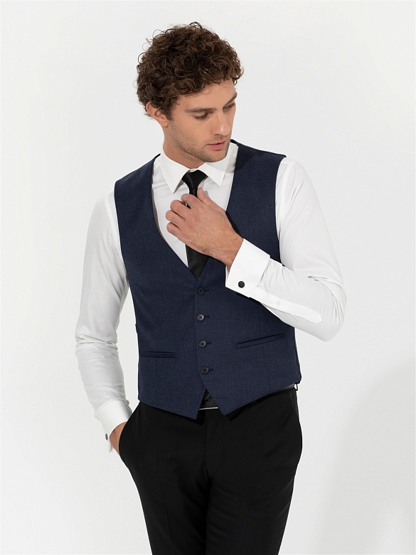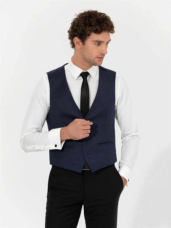 Жилет Cacharel из шерстяной ткани. V-образный вырез визуально вытягивает линию верха. Застёгивается на пуговицы. На спинке расположена регулируемая застёжка для изменения объёма.