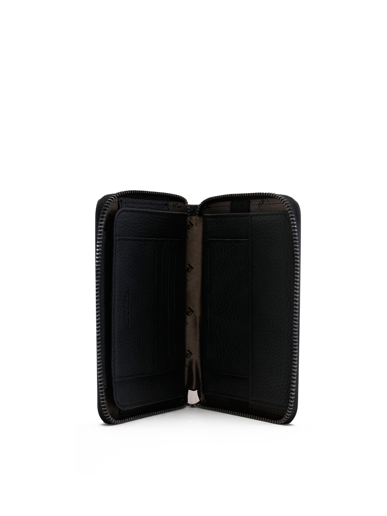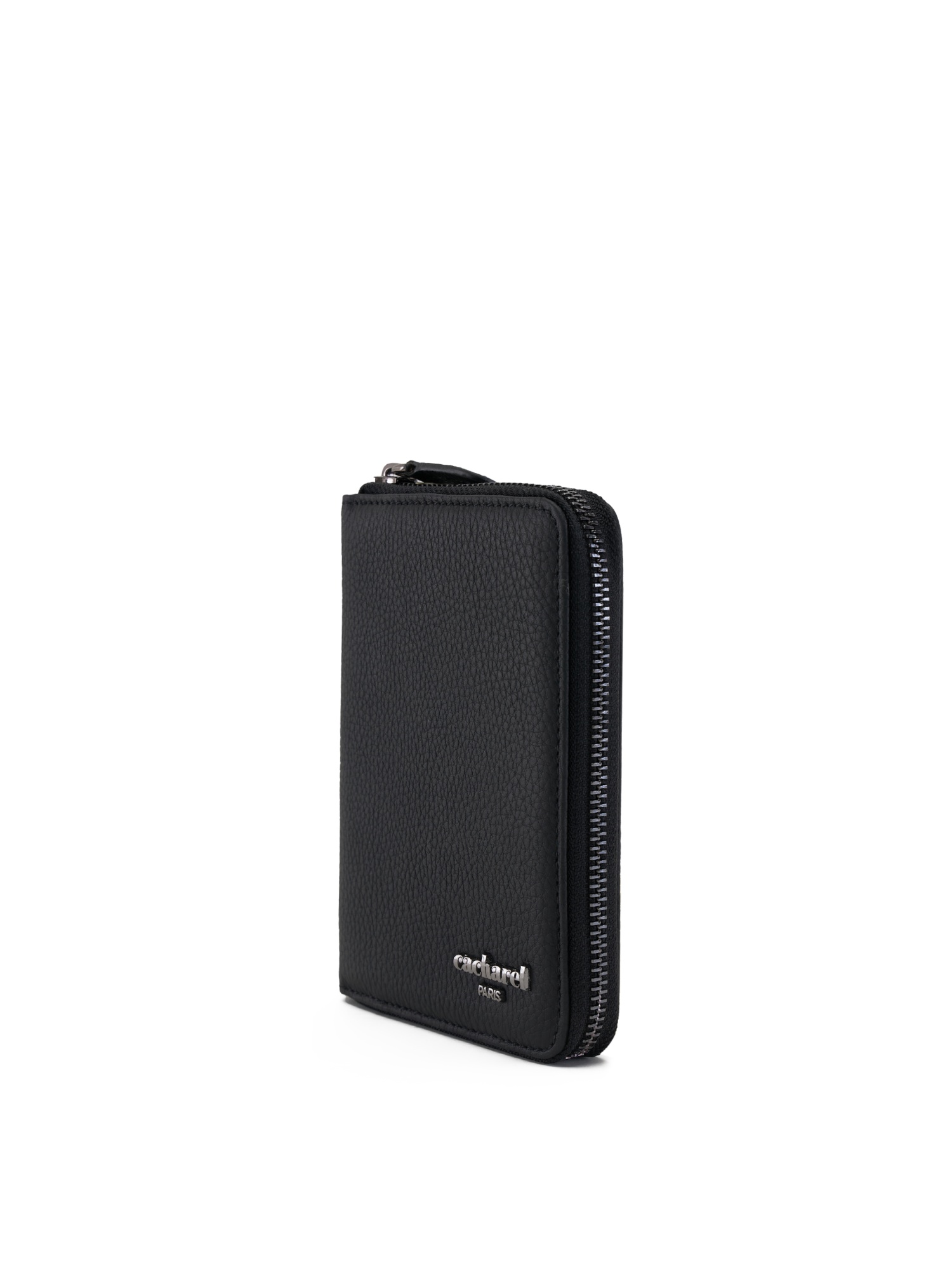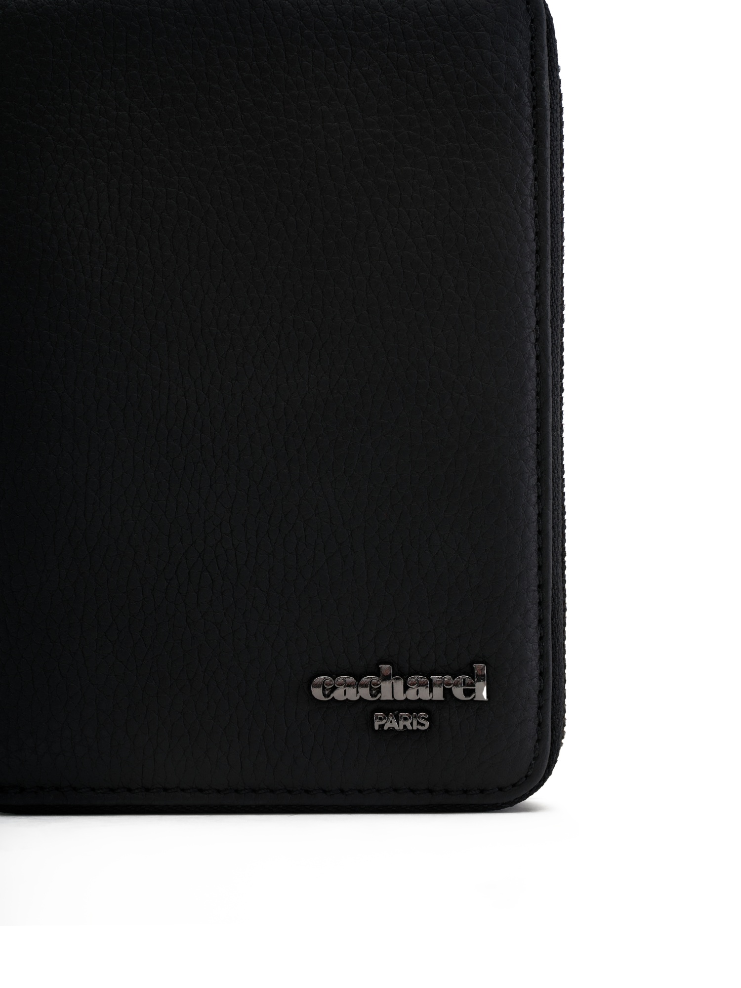 Кожаный кошелёк Cacharel из натуральной кожи с выраженной зернистой фактурой. Закрывается на круговую молнию. Внутри предусмотрены отделения для купюр и слоты для банковских карт, что обеспечивает удобную организацию повседневных принадлежностей.