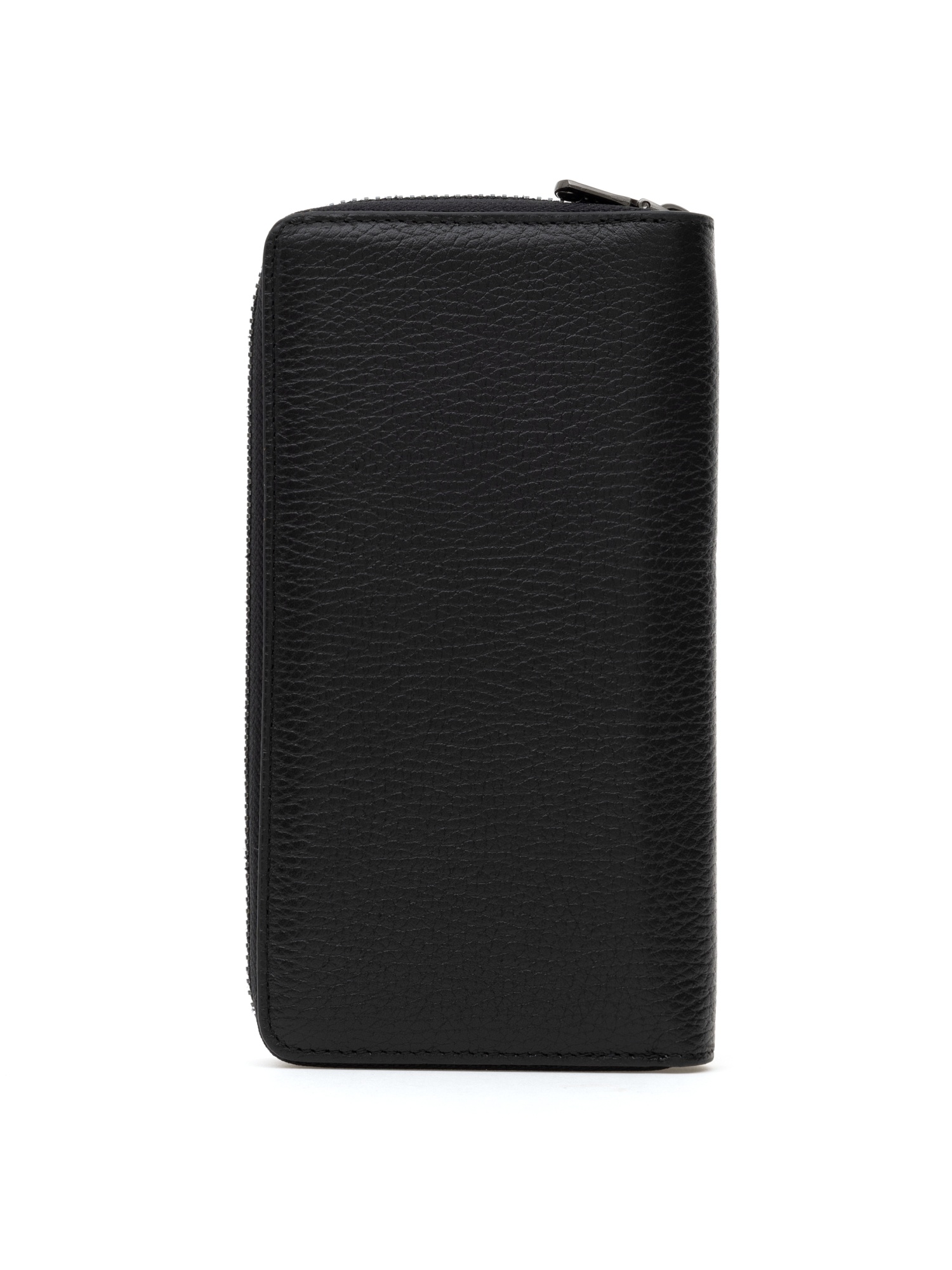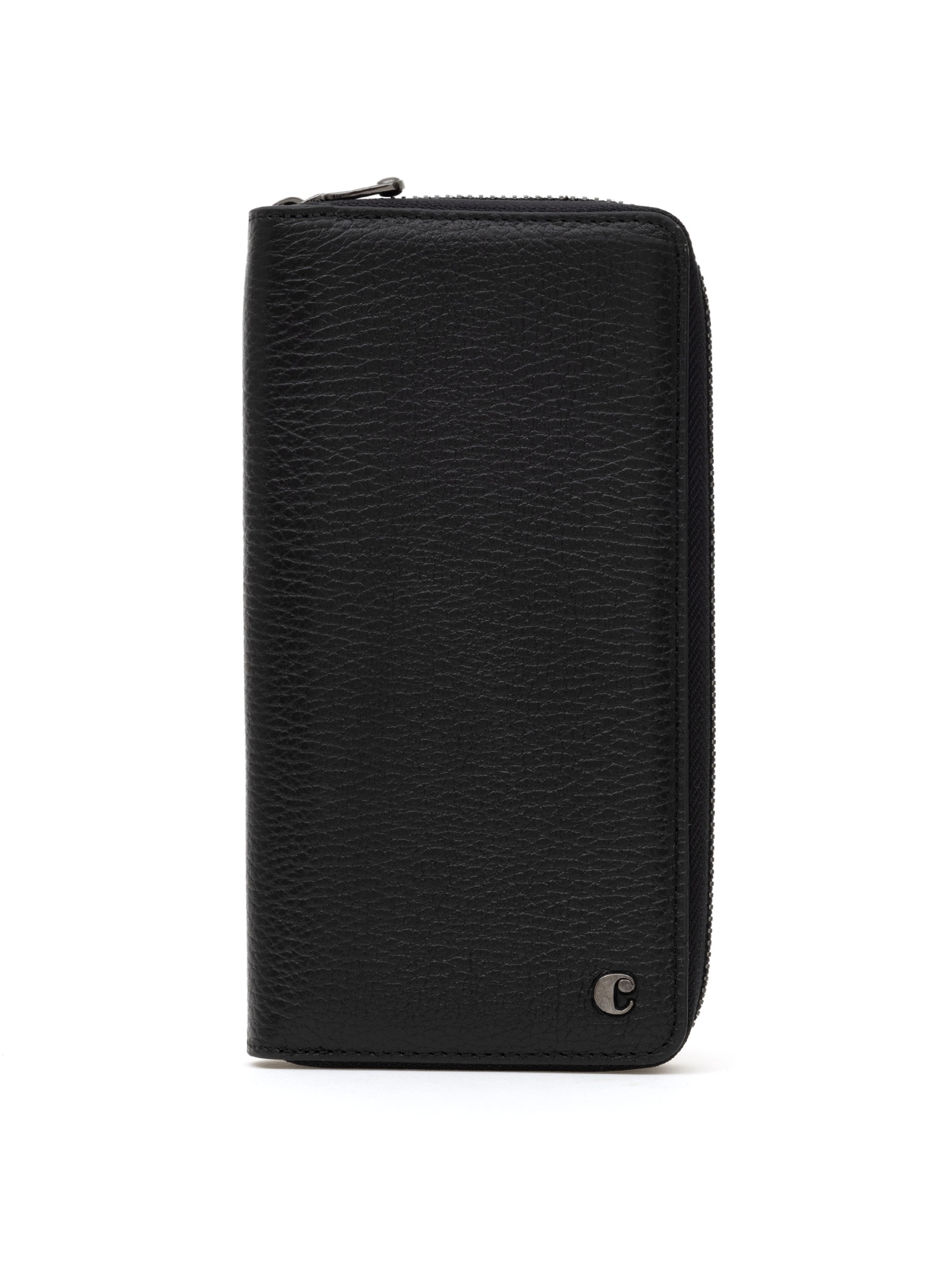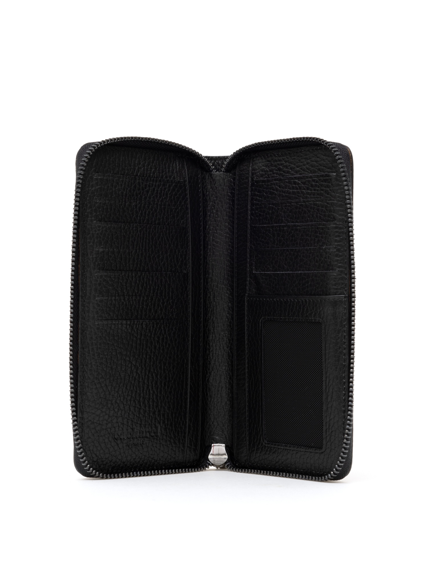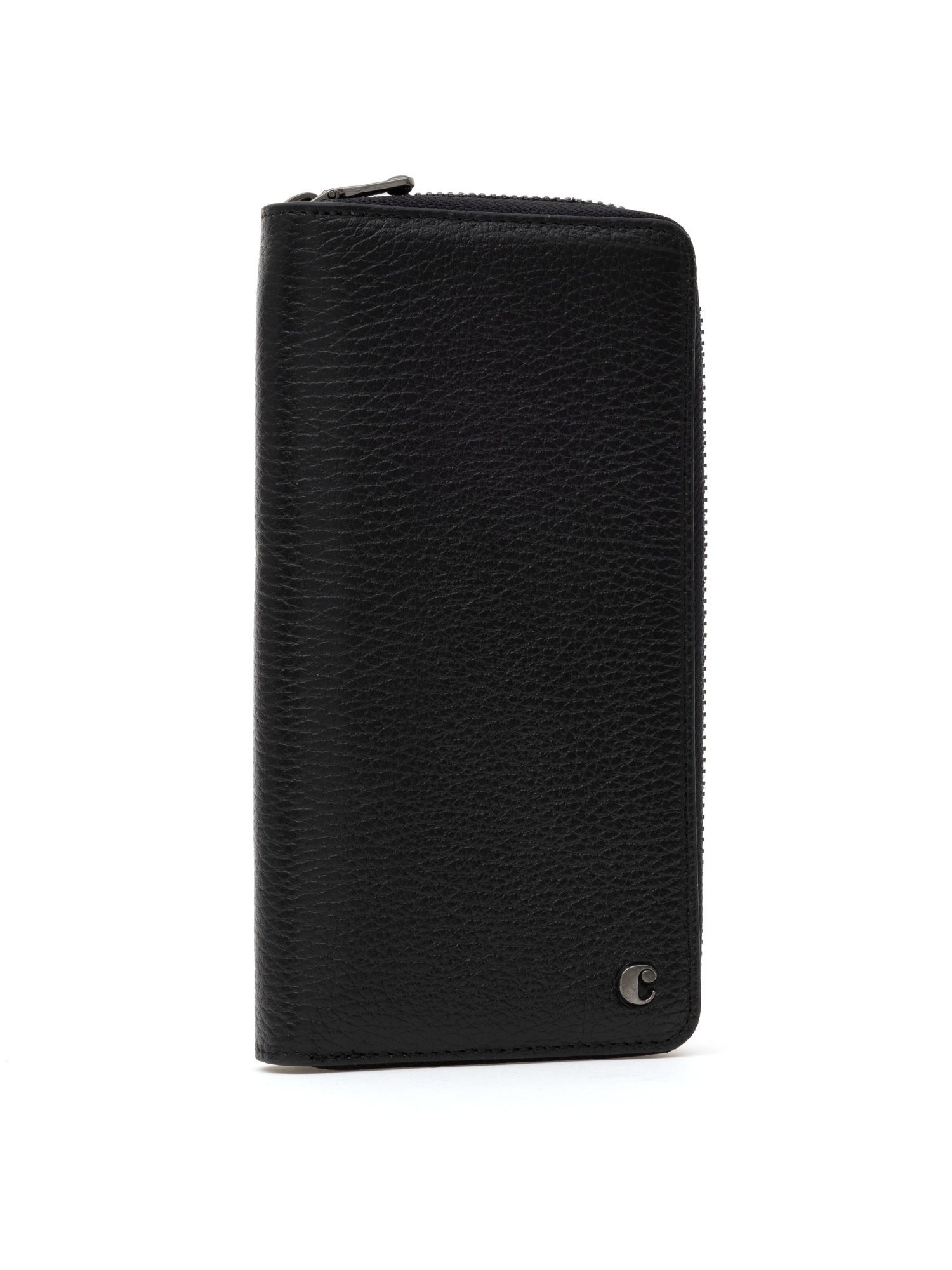 Кожаное портмоне Cacharel из натуральной кожи с выраженной зернистой фактурой. Закрывается на круговую молнию. Внутри предусмотрены отделения для купюр, слоты для банковских карт и прозрачное окно для документа.