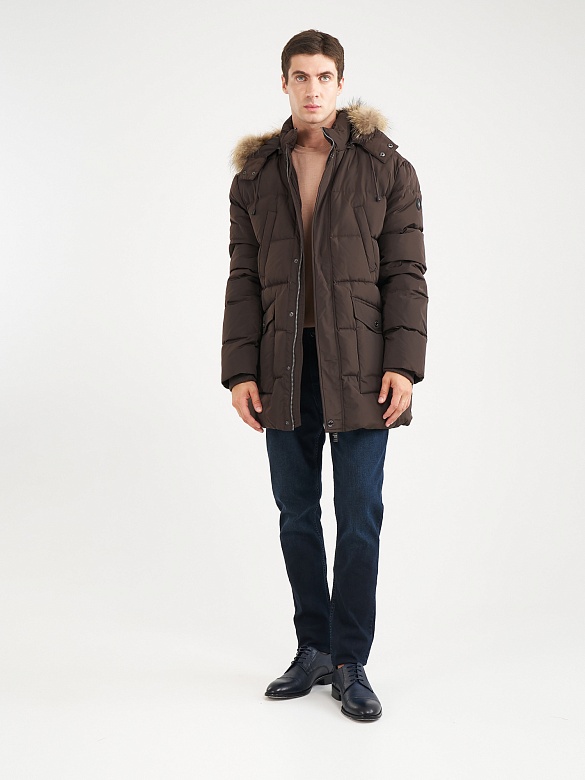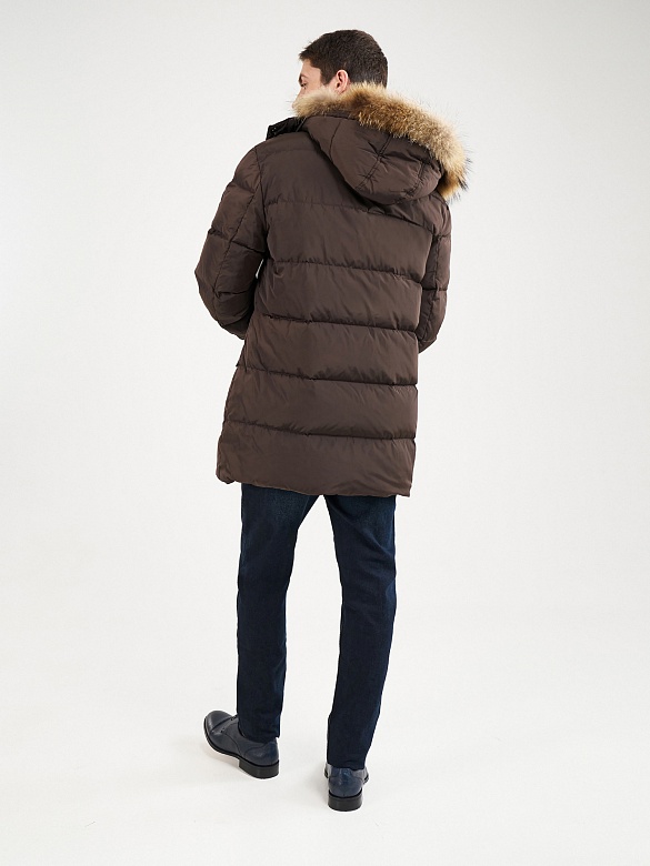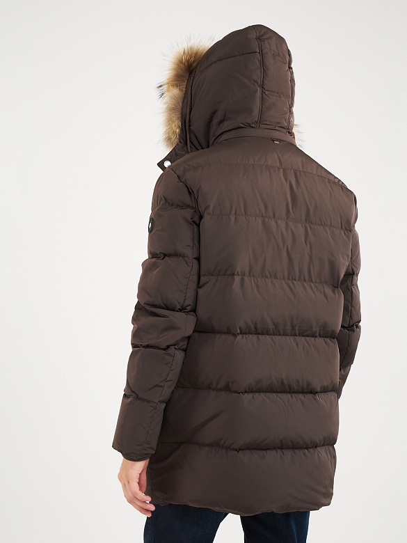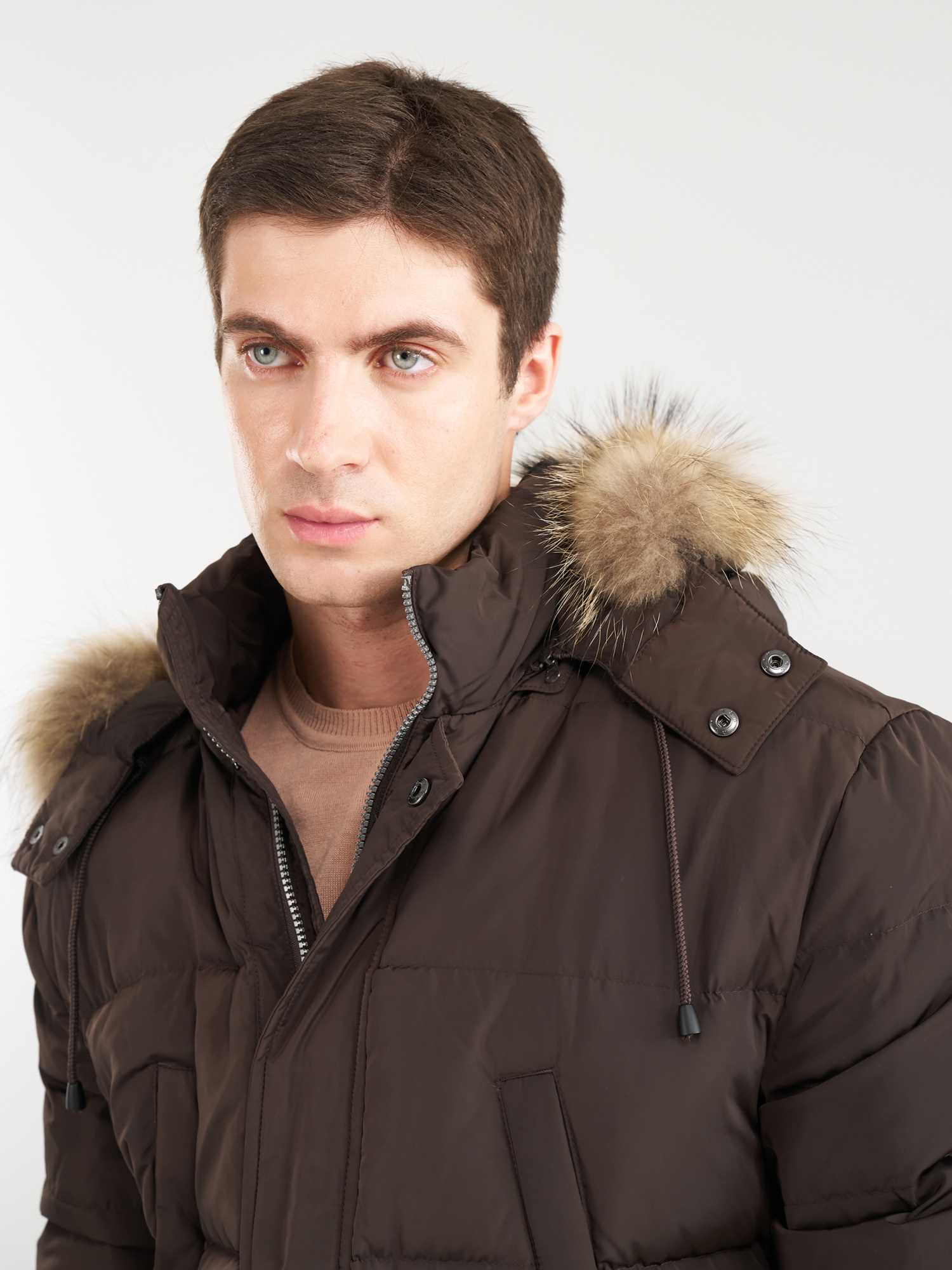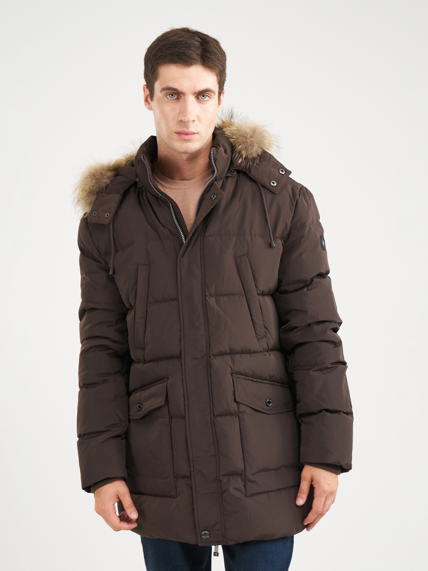 Пуховик Cacharel из натурального пуха и пера гарантирует высокую теплоизоляцию при лёгком весе изделия. Капюшон со съёмной меховой отделкой на молнии — её можно легко снять при необходимости.