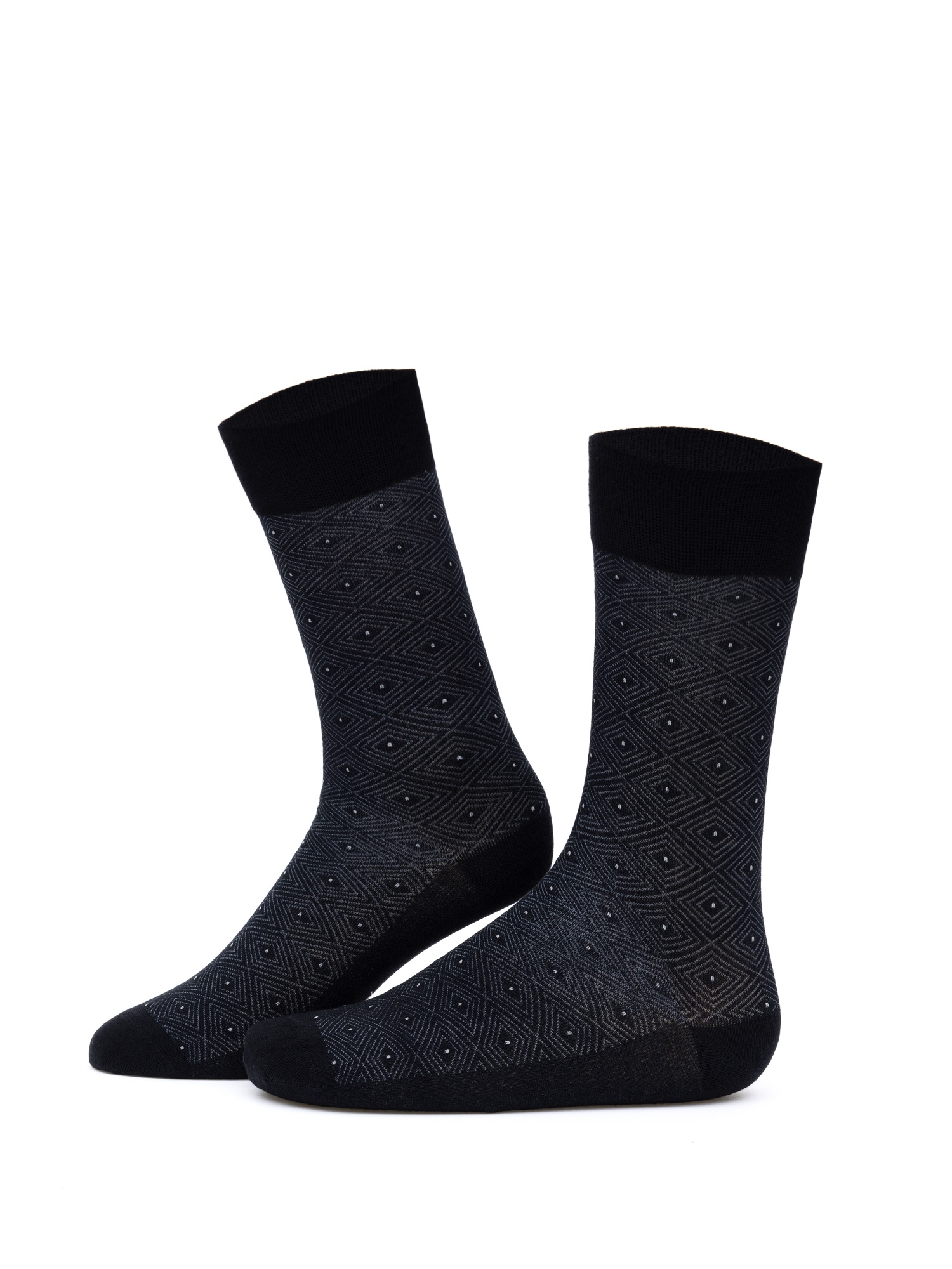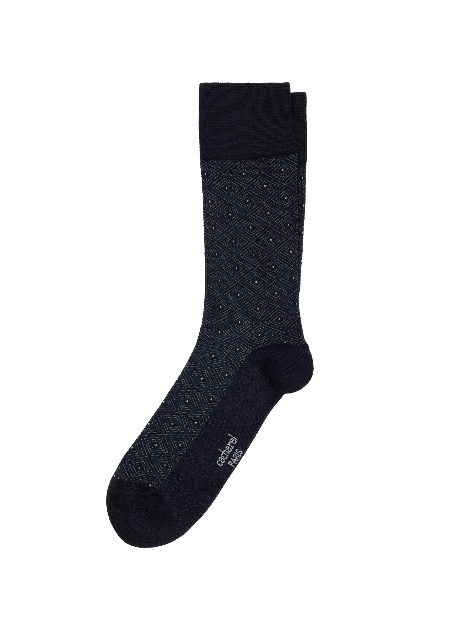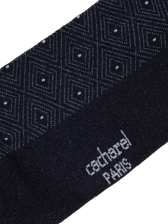 Высокие носки Cacharel с геометрическим узором. Дизайн добавляет акцент, сохраняя сдержанный и универсальный характер. Эластичная резинка обеспечивает комфортную посадку и надёжную фиксацию.