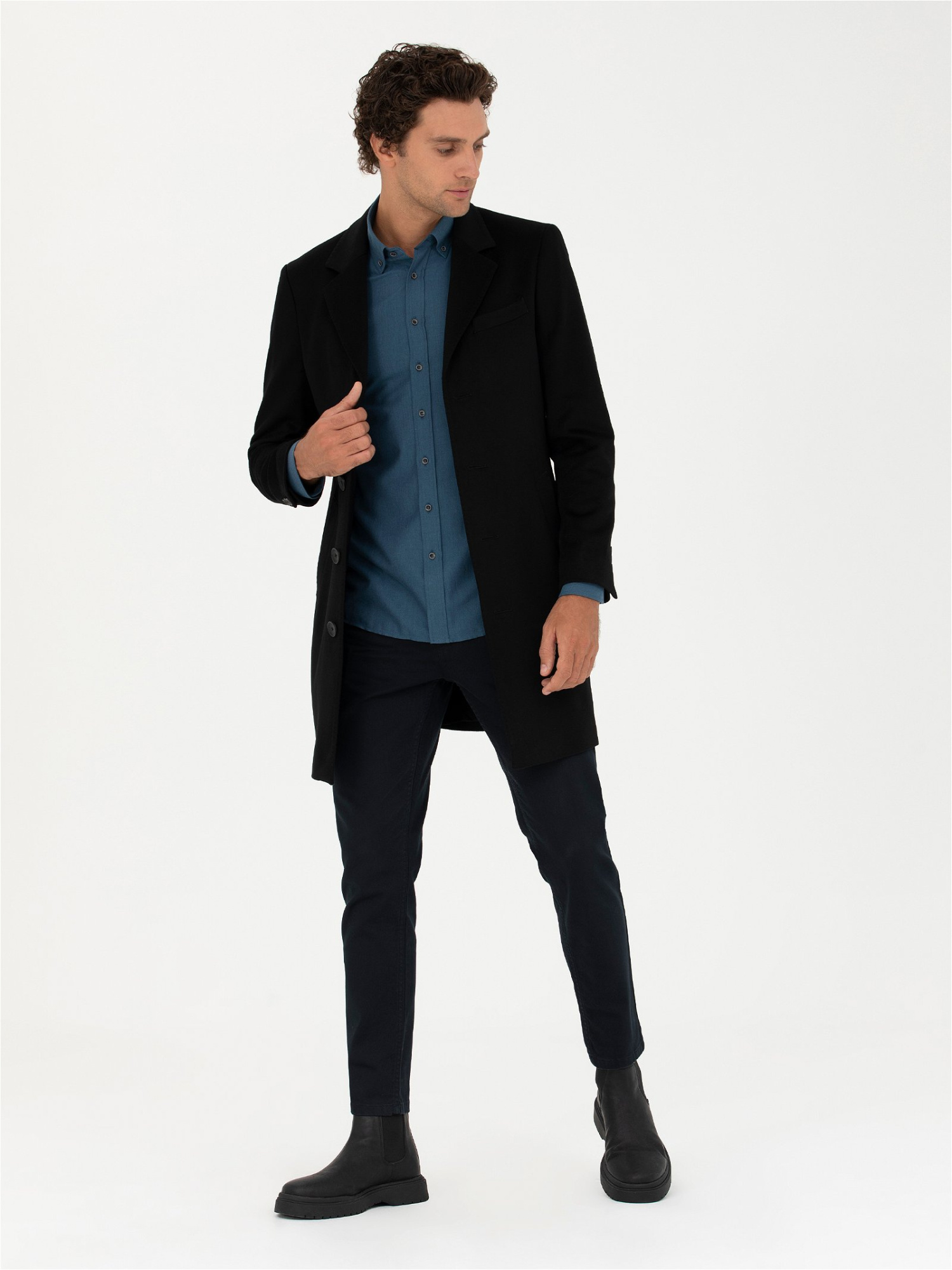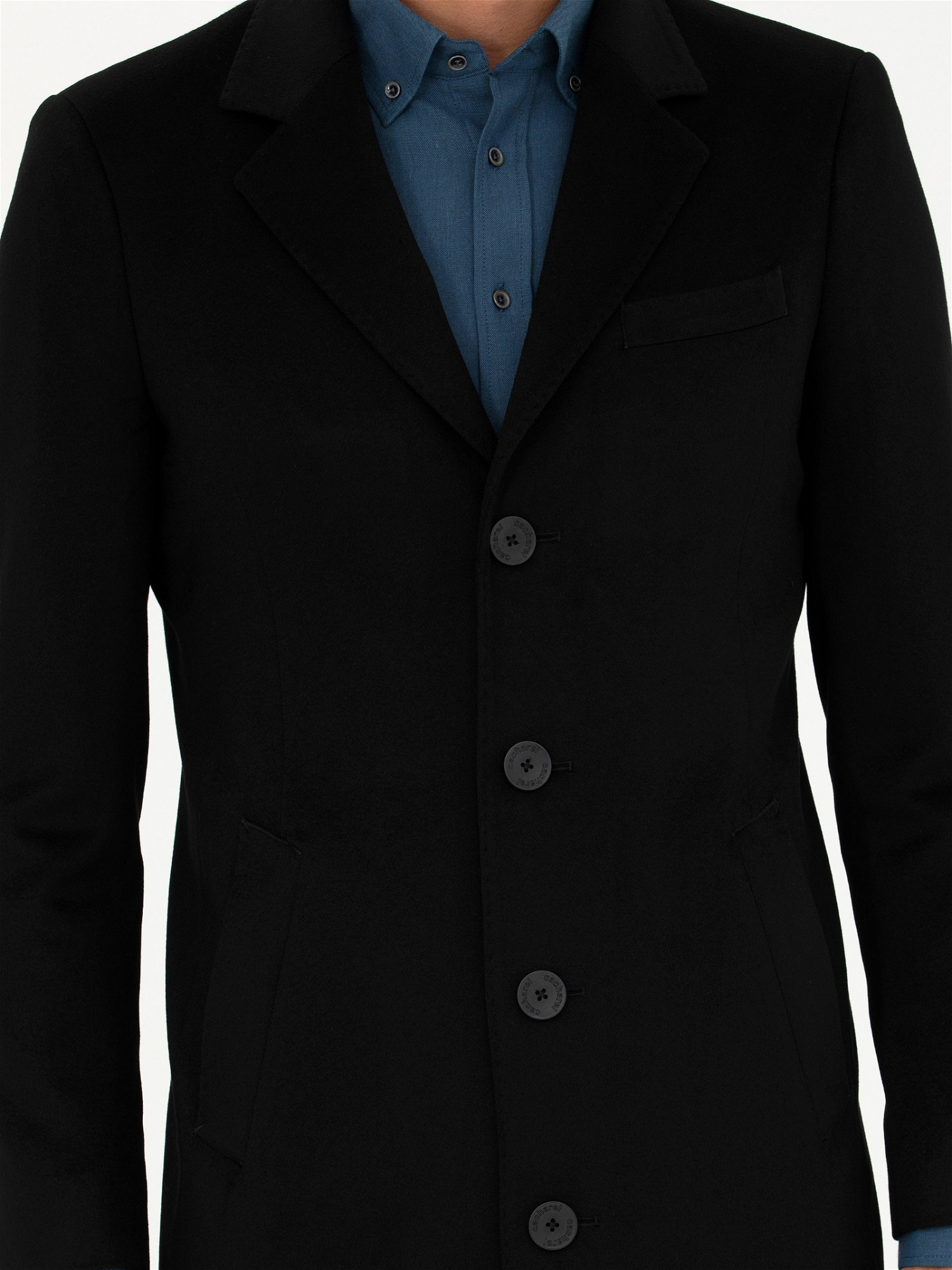Однобортное пальто Cacharel из 100% кашемира застёгивается на пуговицы, имеет отложной воротник, аккуратные прорезные карманы и шлицу на спинке для свободы движения.