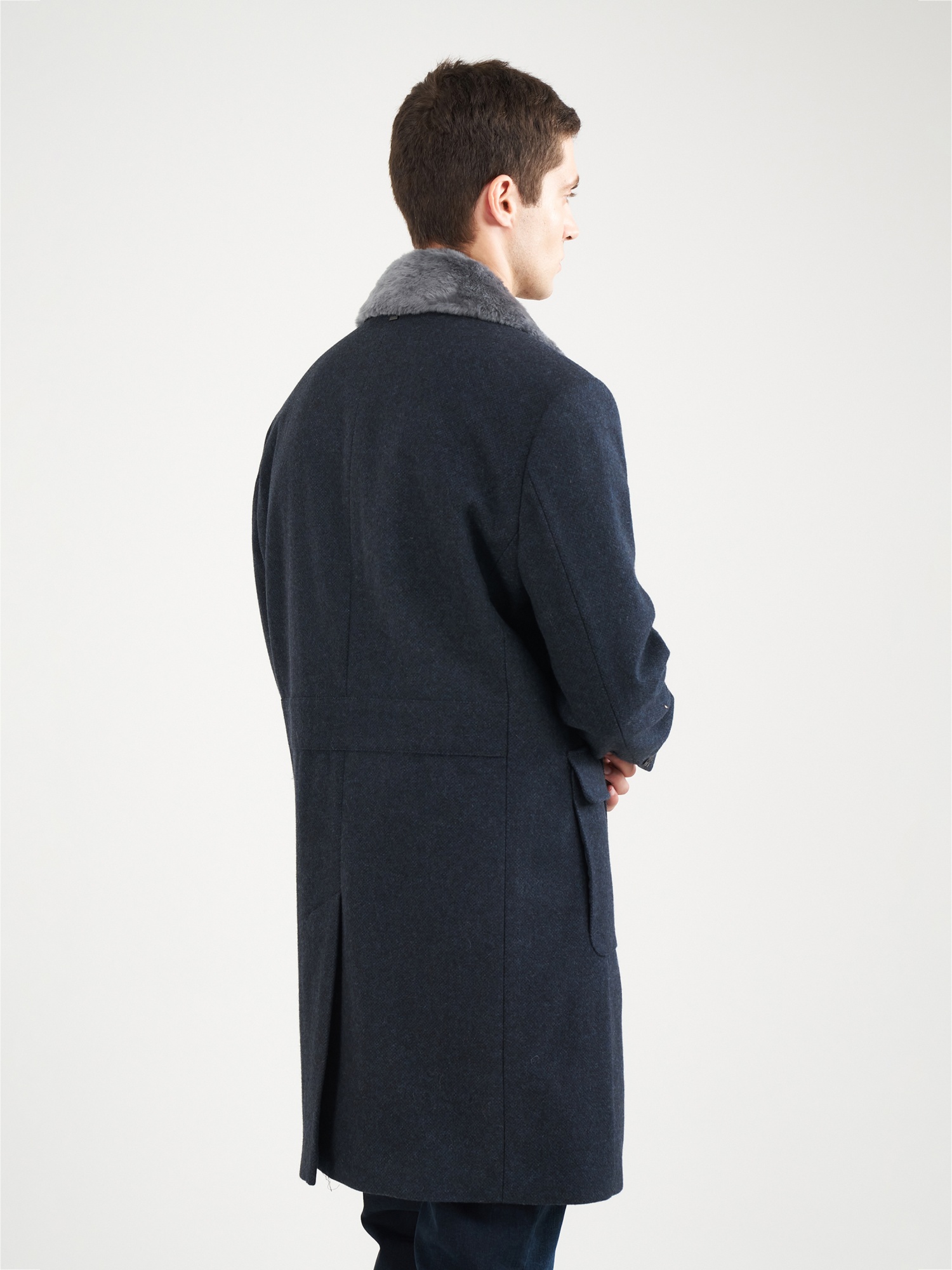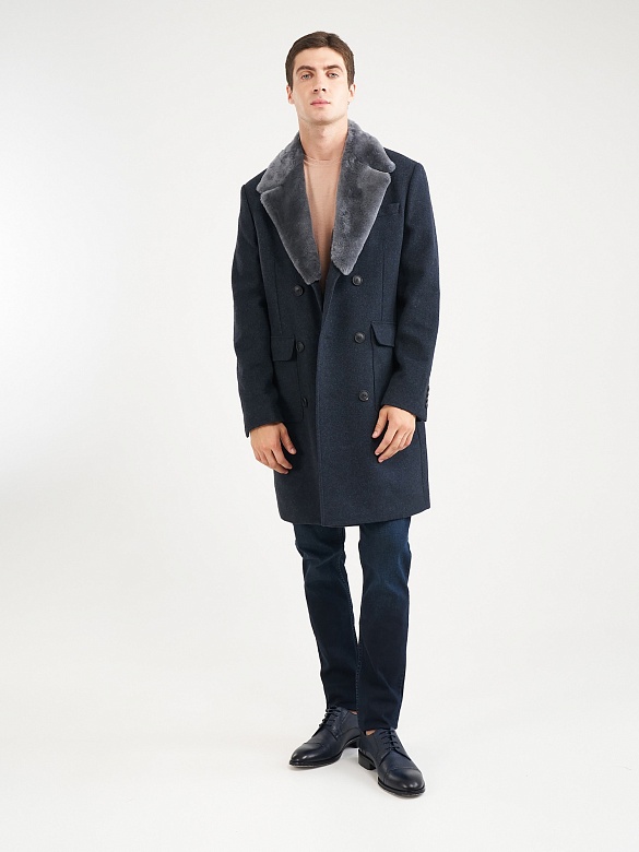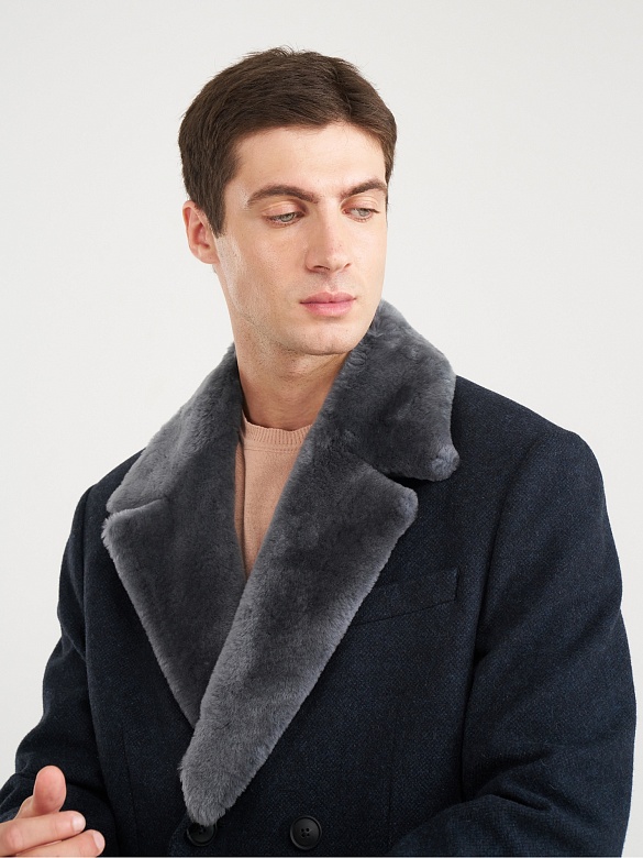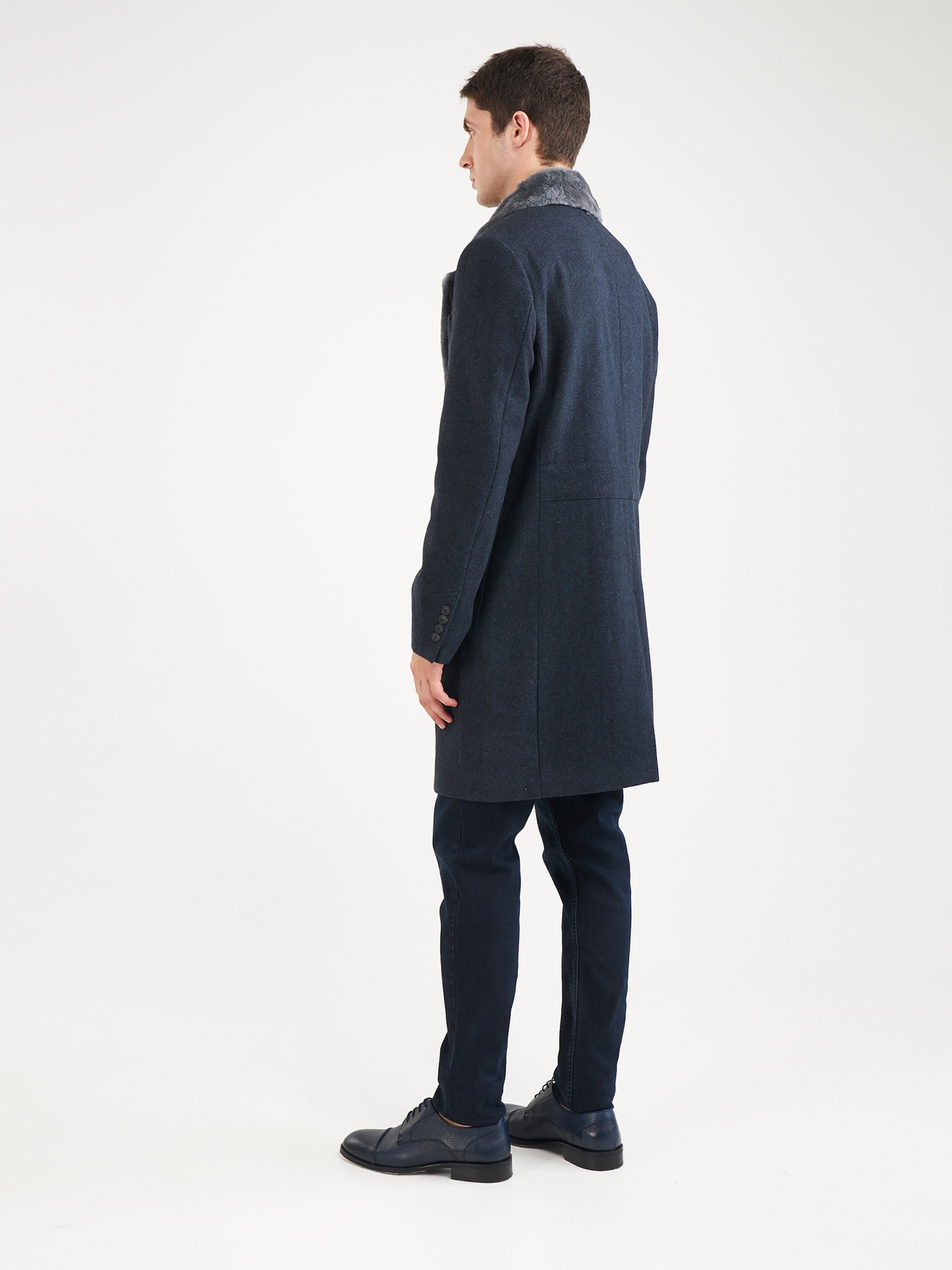 Шерстяное пальто Cacharel прямого кроя дополнено мягким меховым воротником. Однобортная застёжка поддерживает лаконичность силуэта, Накладные карманы с клапанами придают функциональность изделию.