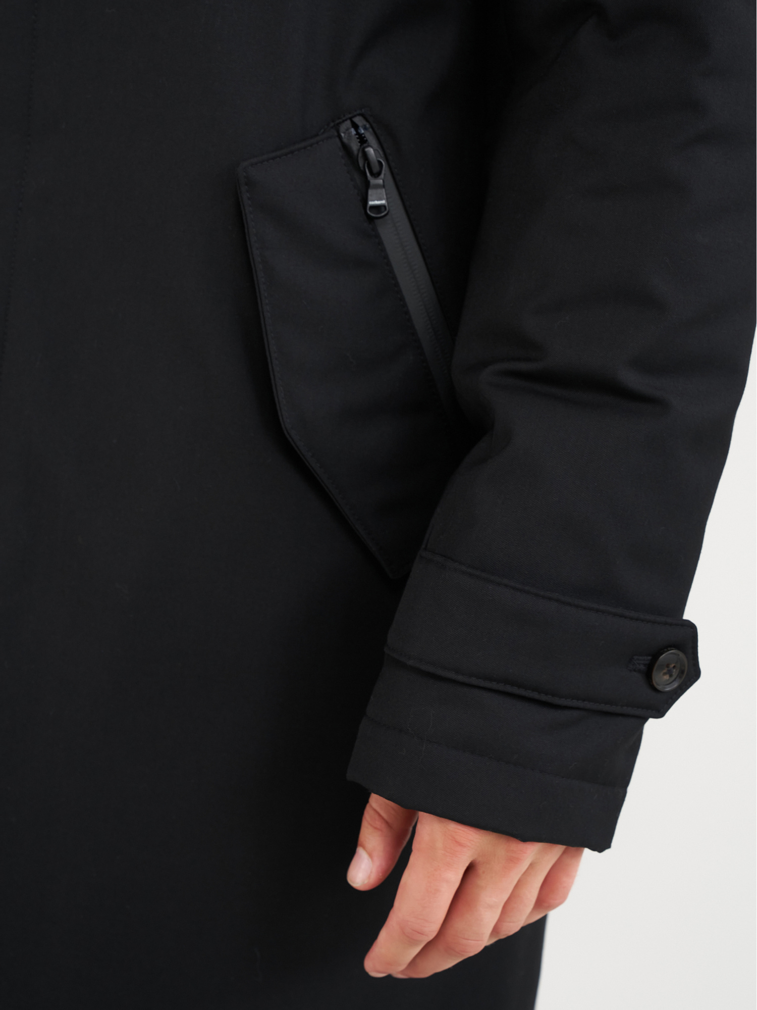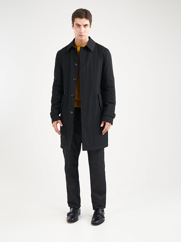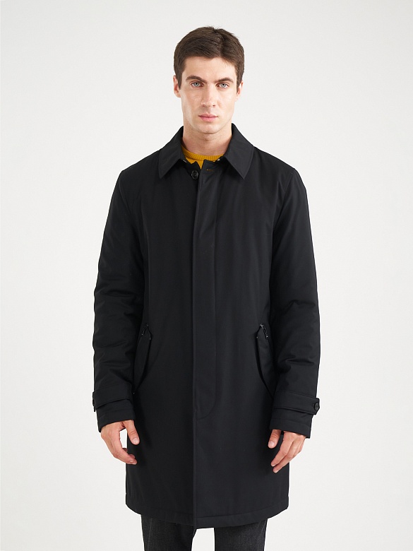 Утеплённая плащ-парка Cacharel с отложным воротником, с лаконичным прямым кроем и застёжкой на пуговицы под планкой. Плащ дополнен двумя карманами на молнии с фигурными клапанами и манжетами на пуговице. Ветровлаго-защитная ткань обеспечивает комфорт в прохладную погоду.