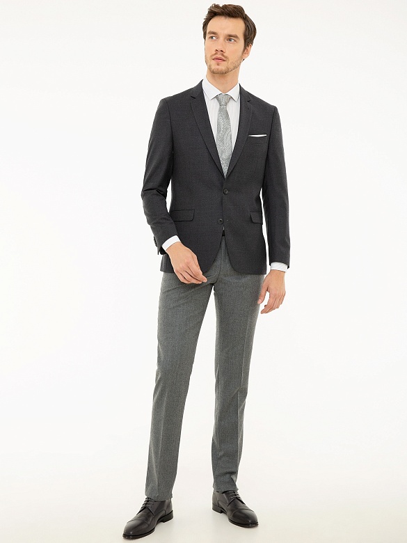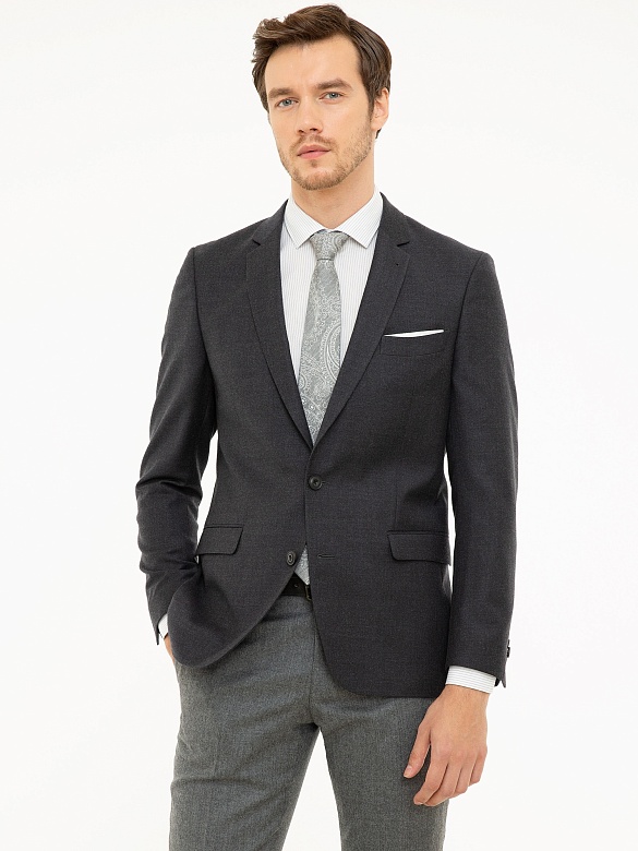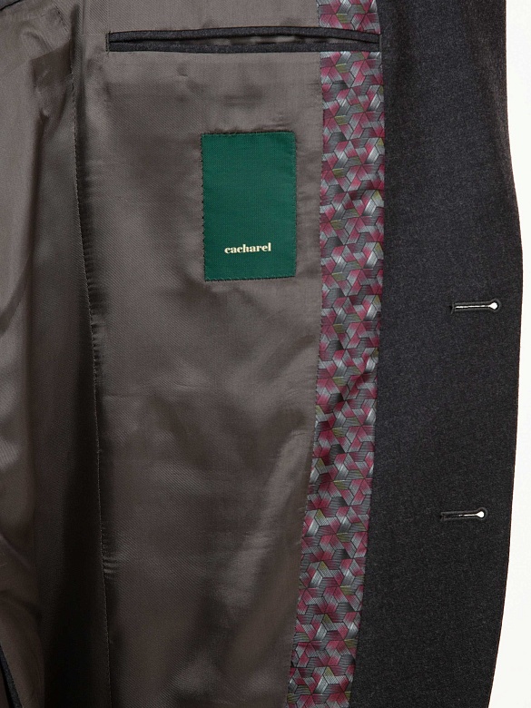 Мужской однобортный пиджак Cacharel — выполнен из смесовой ткани с добавлением натуральной шерсти, которая обеспечивает комфорт. Приталенный крой подчёркивает силуэт, сохраняя элегантность и свободу движений. Пиджак дополнен прорезными карманами с клапанами и нагрудным карманом.