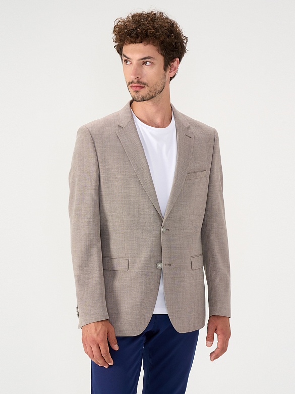 Однобортный пиджак Cacharel — из смесовой шерстяной ткани. Смесовая шерсть сочетает практичность и комфорт при носке. Приталенный крой обеспечивает аккуратную посадку. Пиджак дополнен накладными карманами и нагрудным карманом.