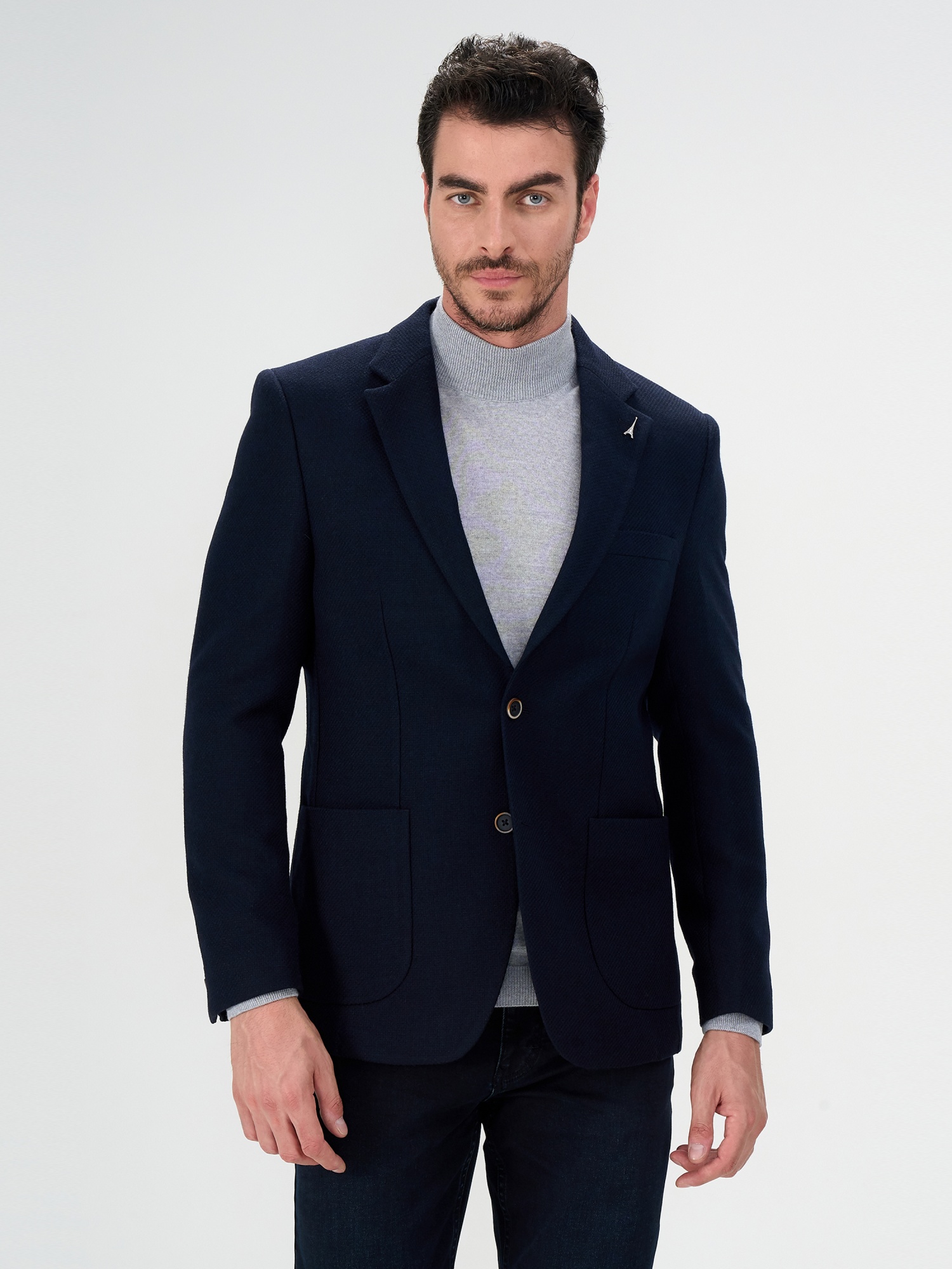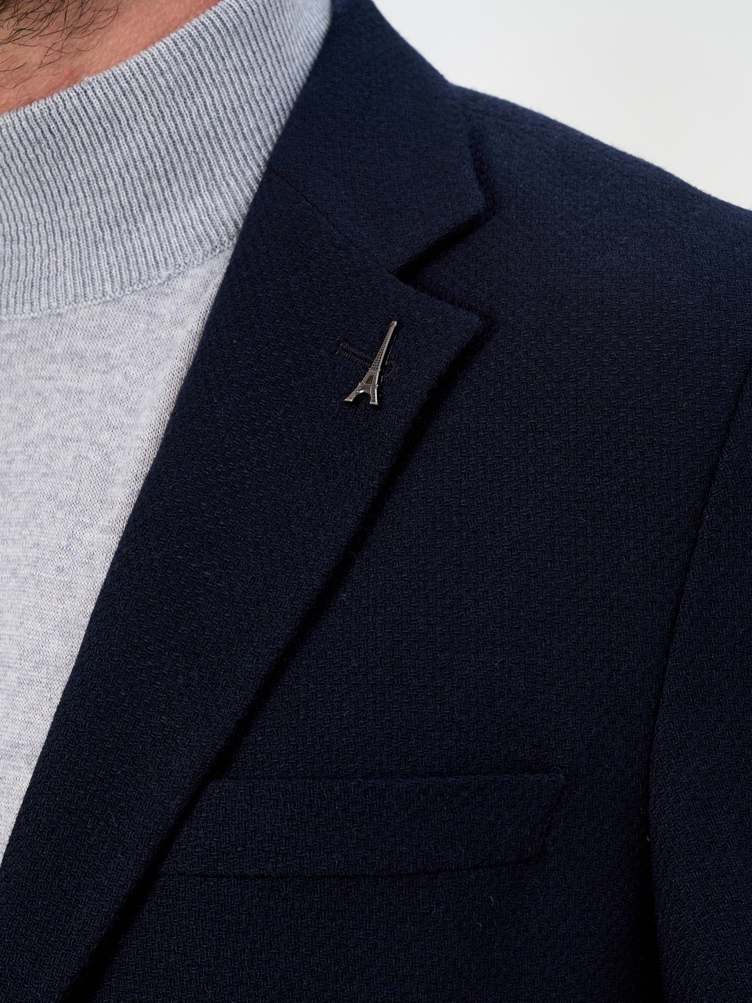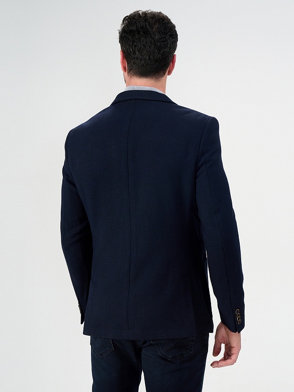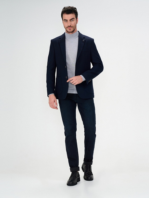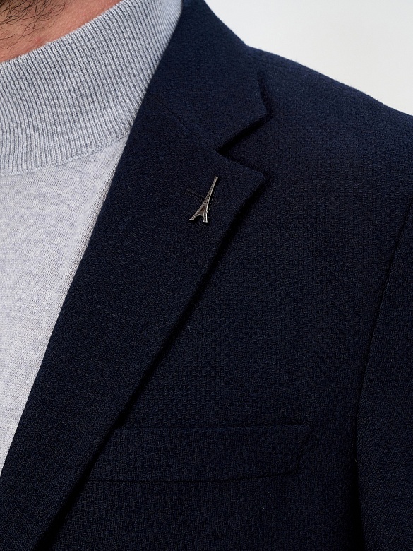 Мужской однобортный пиджак Cacharel — из качественной смесовой шерсти, которая обеспечивает комфорт. Приталенный крой подчёркивает силуэт. Пиджак с накладными карманами, нагрудным карманом.