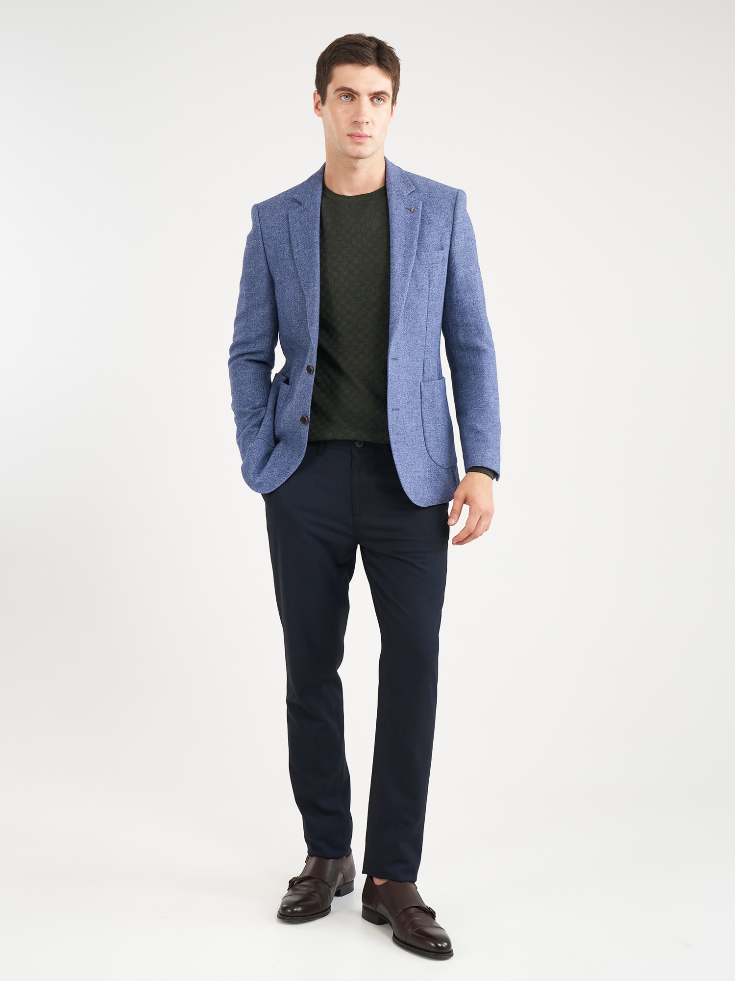 Мужской однобортный пиджак Cacharel — выполнен из смесовой ткани с добавлением натуральной шерсти, которая обеспечивает комфорт. Приталенный крой подчёркивает силуэт, сохраняя элегантность и свободу движений. Пиджак дополнен прорезными карманами с клапанами и нагрудным карманом.