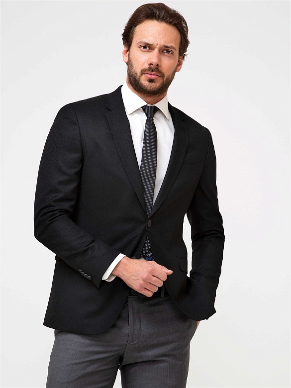 Однобортный пиджак Cacharel — из шерстяной ткани, которая обеспечивает комфорт и аккуратный внешний вид. Внутренняя часть аккуратно оформлена подкладкой. Приталенный крой подчёркивает силуэт. Пиджак с классическими элементами: прорезными карманами с клапанами, нагрудным карманом и аккуратными пуговицами на манжетах.