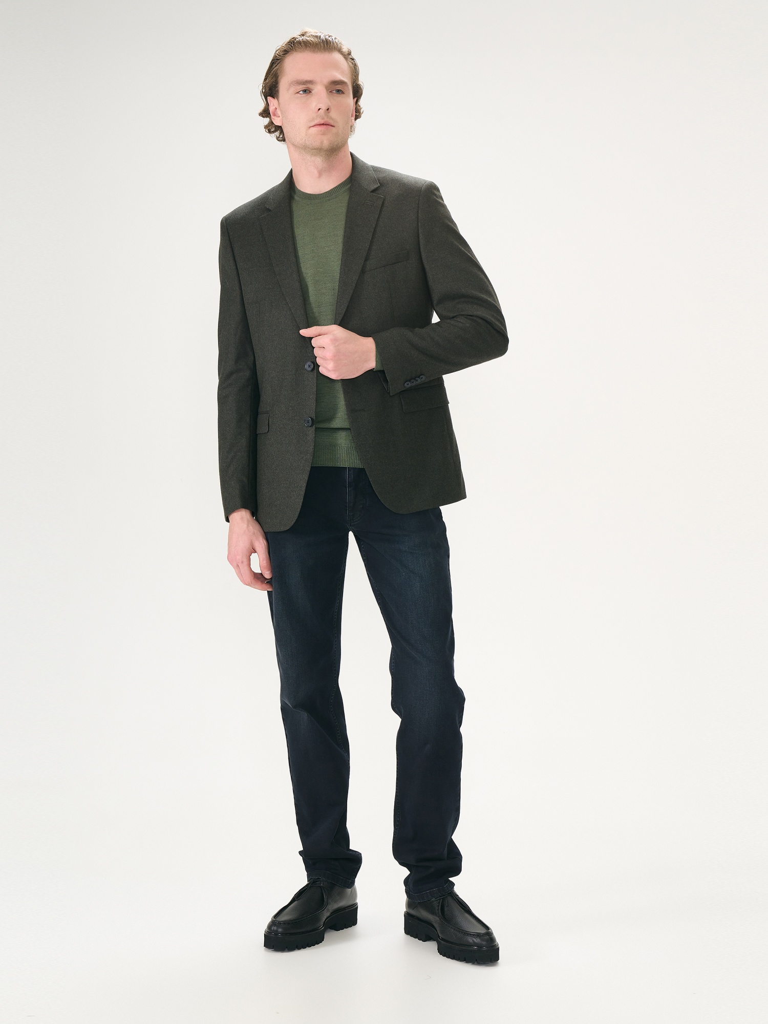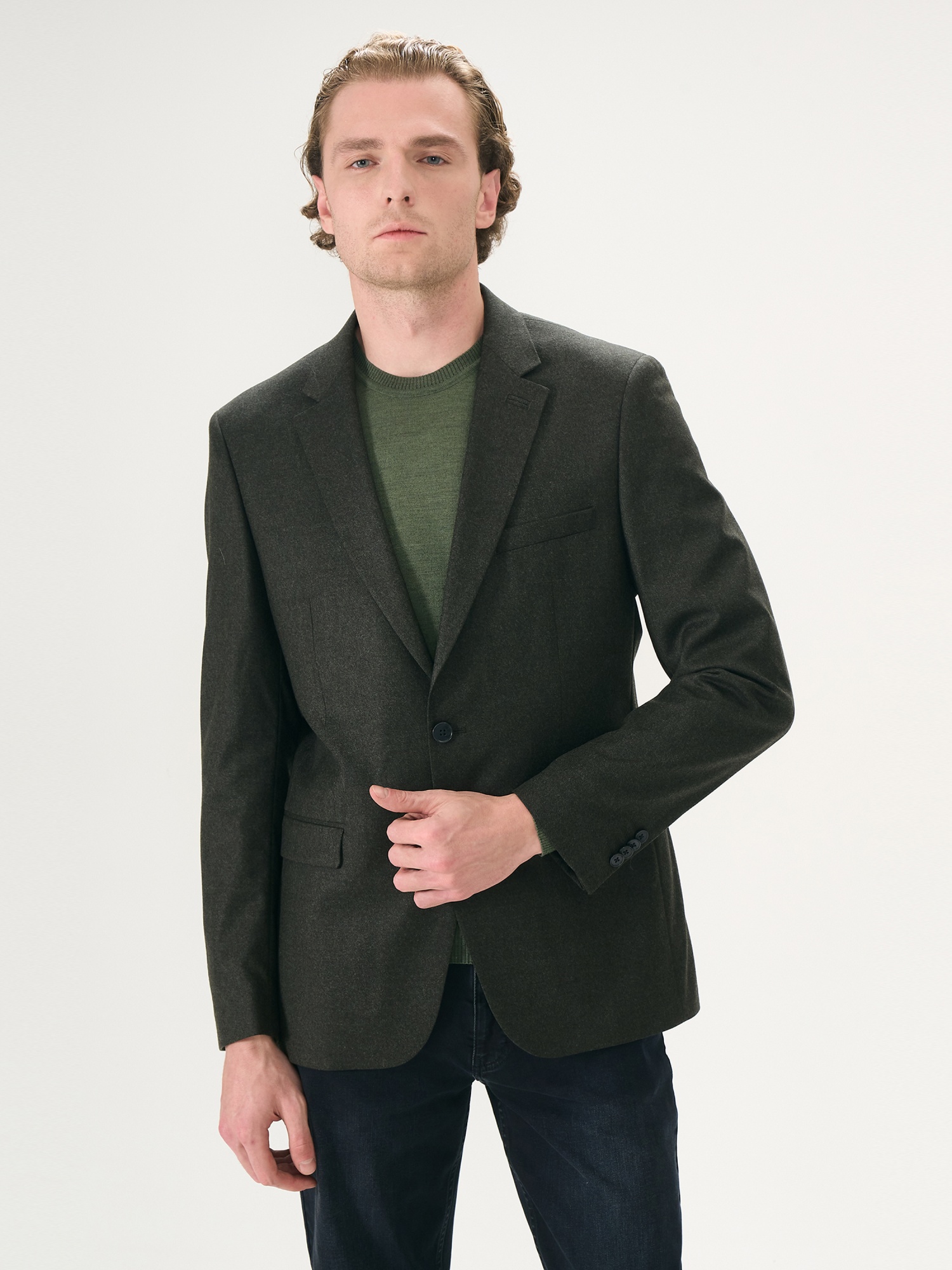 Однобортный пиджак Cacharel — из шерстяной ткани, которая обеспечивает комфорт и аккуратный внешний вид. Внутренняя часть аккуратно оформлена подкладкой. Приталенный крой подчёркивает силуэт. Пиджак с классическими элементами: прорезными карманами с клапанами, нагрудным карманом и аккуратными пуговицами на манжетах.