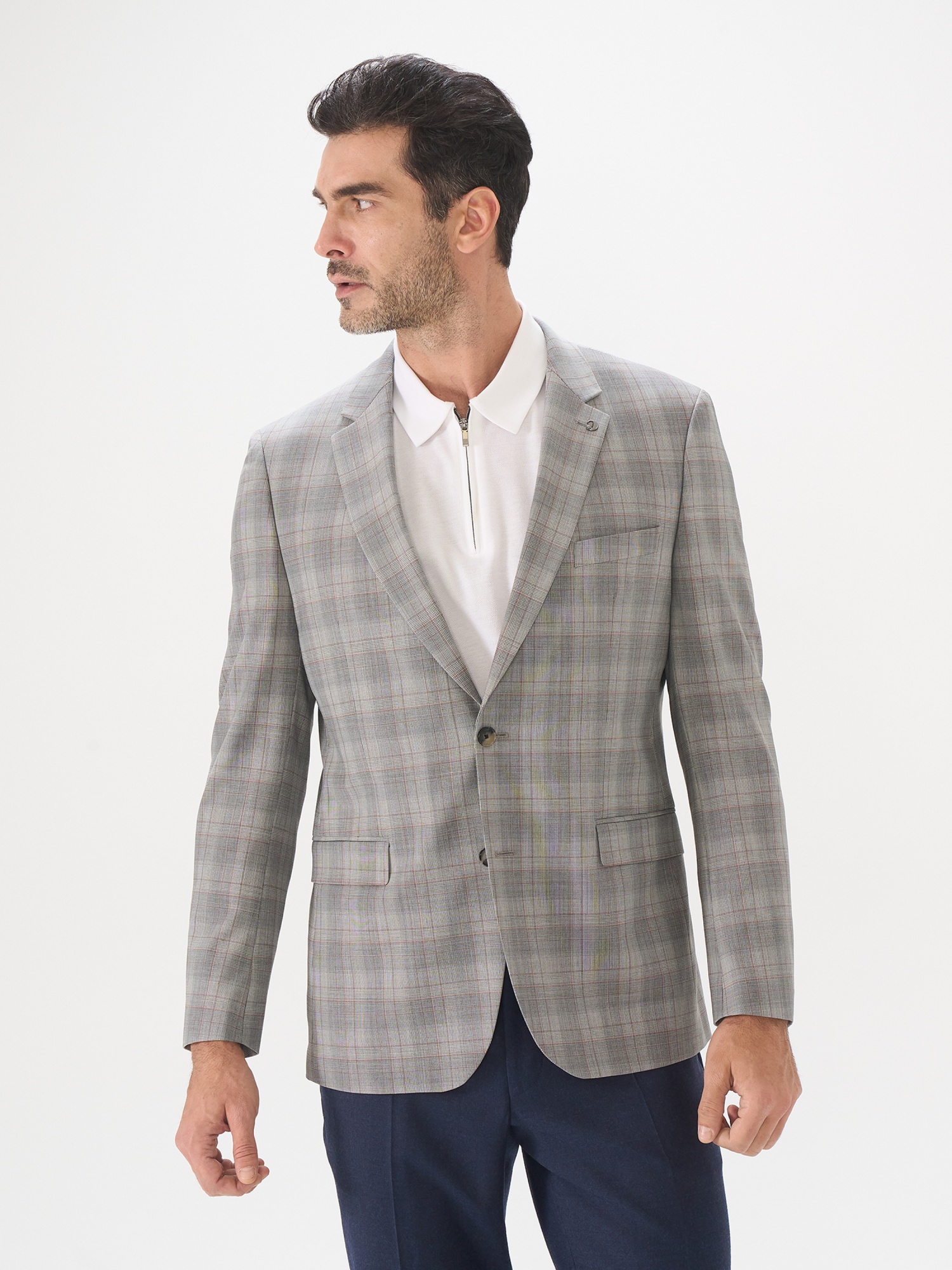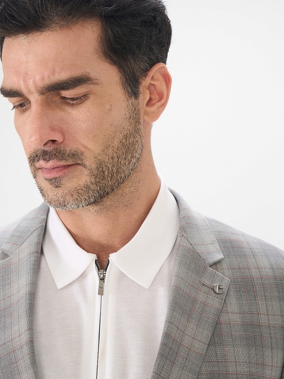 Однобортный пиджак Cacharel — из смесовой шерстяной ткани, которая обеспечивает комфорт, износостойкость и аккуратный внешний вид. Клетка придаёт выразительность и подчёркивает классический стиль. Пиджак с классическими элементами: прорезными карманами с клапанами, нагрудным карманом и аккуратными пуговицами на манжетах.