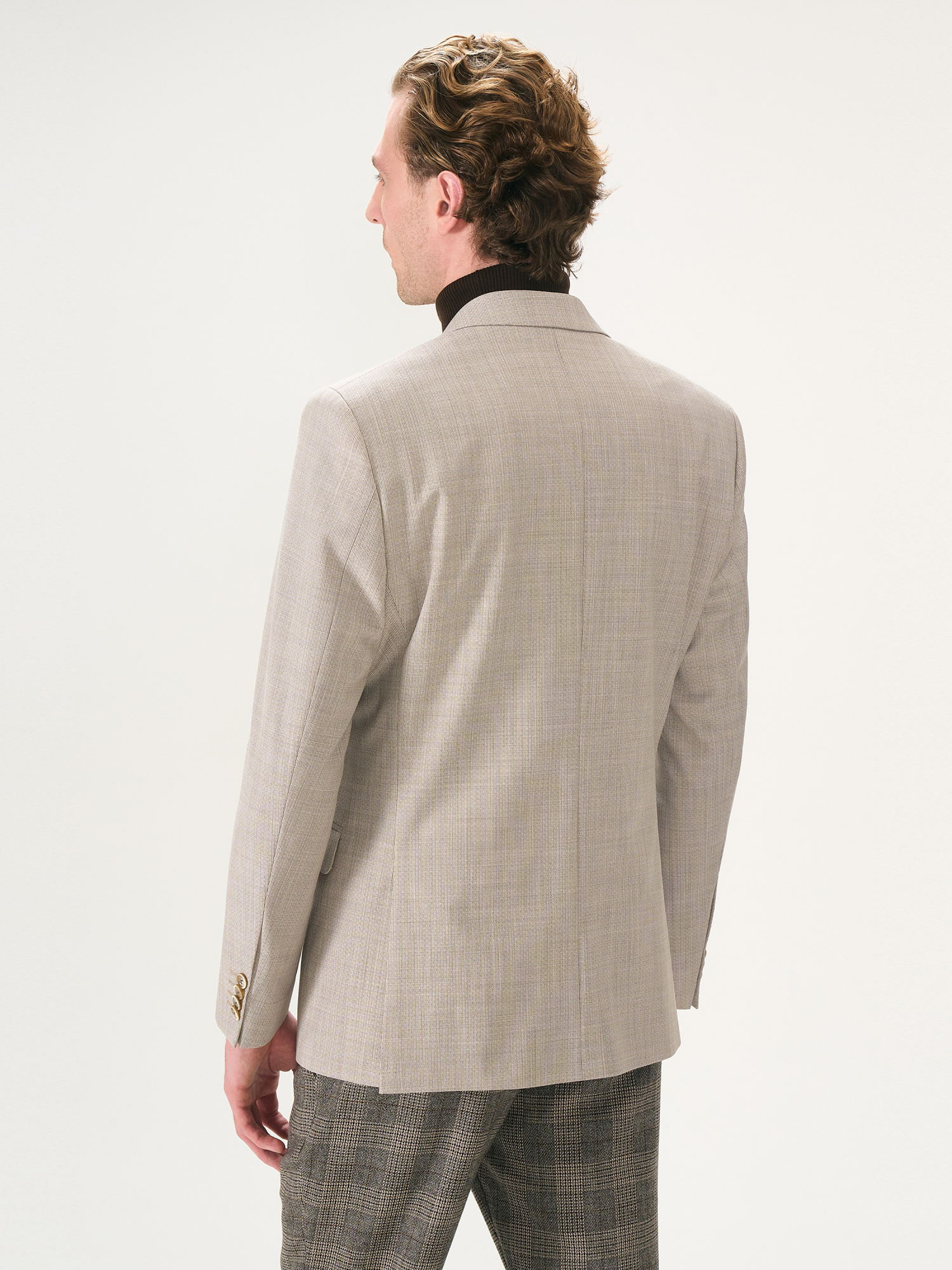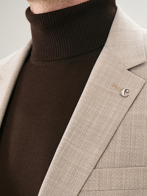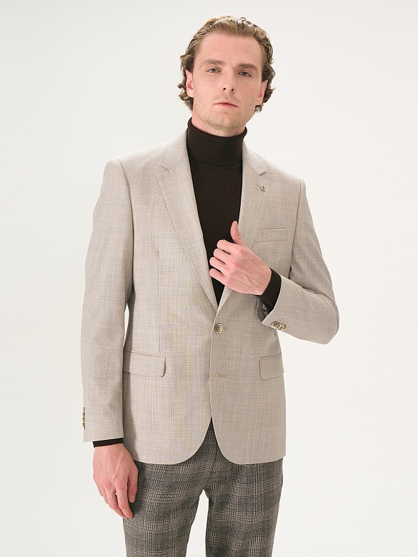Смесь тканей делает его мягким и комфортным при носке, а шерстяной компонент обеспечивает тепло в прохладные дни. Шерсть также придает благородный вид, сохраняя внешний лоск долгие годы. Выбранная модель с двумя пуговицами подчеркивает статусность изделия и добавляет утончённости в стиль владельца. Фасон идеально садится по фигуре, создавая впечатление уверенности и способности принимать любые вызовы времени.