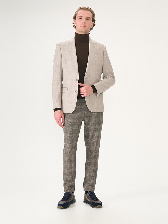 Представляем вашему вниманию настоящий шедевр мужского гардероба – пиджак классический с добавлением шерсти на двух пуговицах Cacharel. Этот предмет одежды станет прекрасным дополнением как повседневного, так и делового образа. Пиджак позволяет выделиться благодаря своему замысловатому сочетанию современных тенденций и традиционной элегантности.