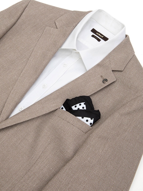 Платок нагрудный с узором Cacharel — классический узор в горошек формирует выразительный внешний вид изделия и придаёт образу аккуратный графичный акцент. Окантовка выполнена в тон основного цветового решения.