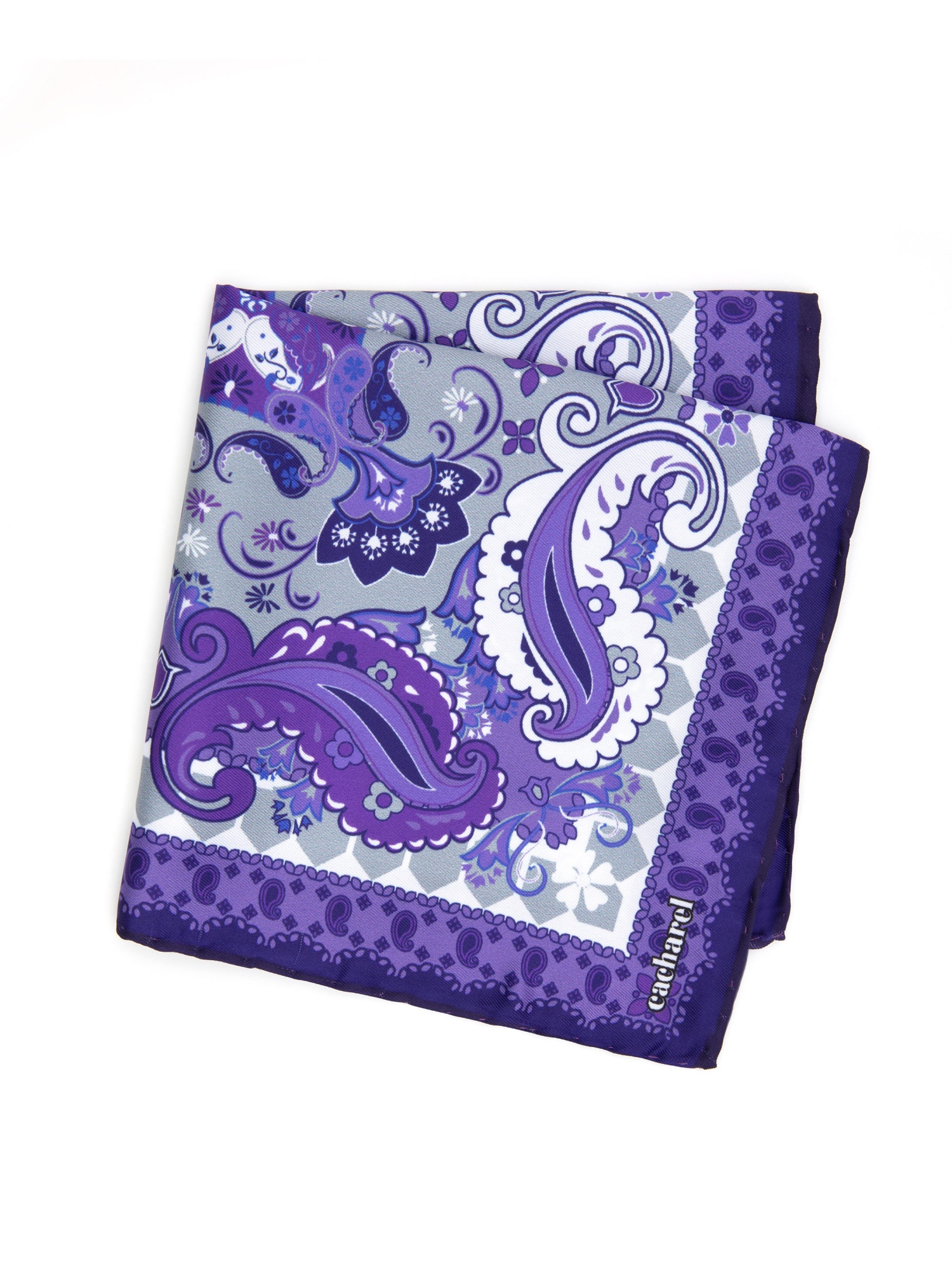 Платок нагрудный с узором Cacharel — орнамент пейсли в сочетании с графическими элементами создаёт выразительный и динамичный рисунок, который хорошо смотрится в классических и повседневных образах.