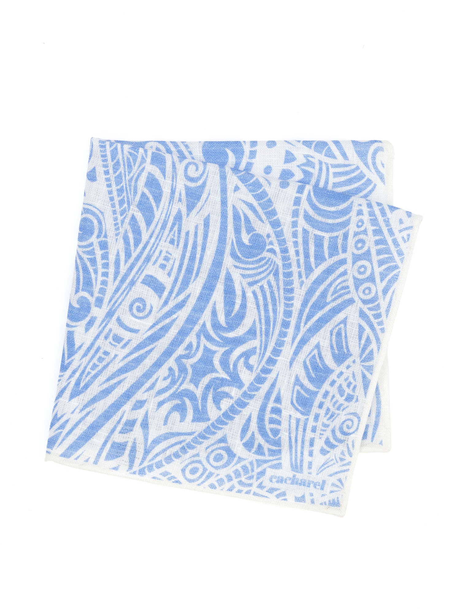 Платок нагрудный льняной с узором Cacharel — аксессуар для классических и деловых образов. Изготовлен из натурального льна. Дизайн оформлен декоративным орнаментом с плавными линиями и абстрактными мотивами.