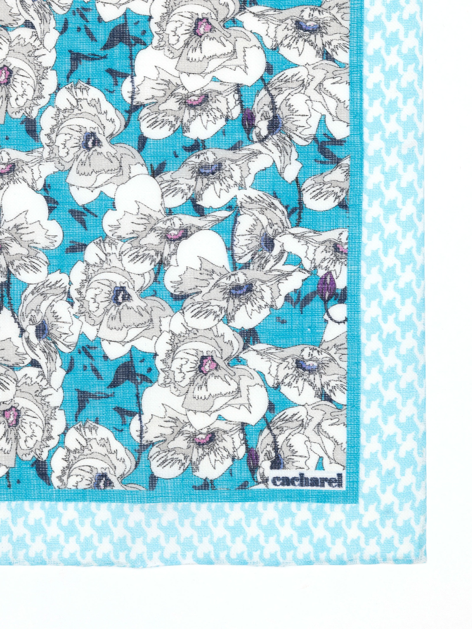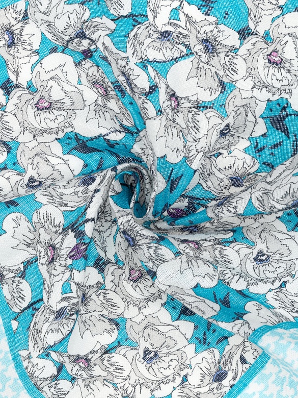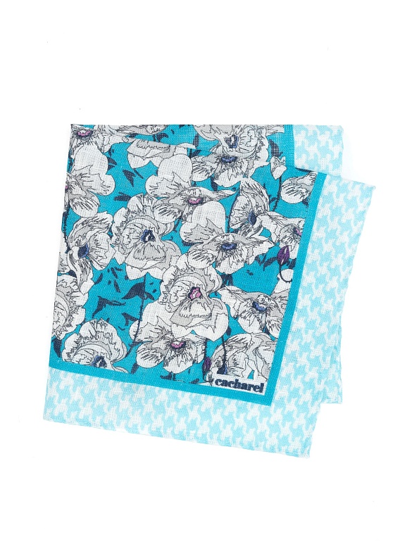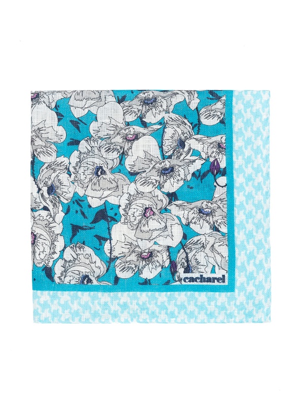 Платок нагрудный льняной с узором Cacharel — аксессуар для классических и деловых образов. Изготовлен из натурального льна. Дизайн выполнен в комбинированном стиле: основная часть украшена цветочным орнаментом, дополненным декоративными элементами, а край оформлен контрастным геометрическим узором.