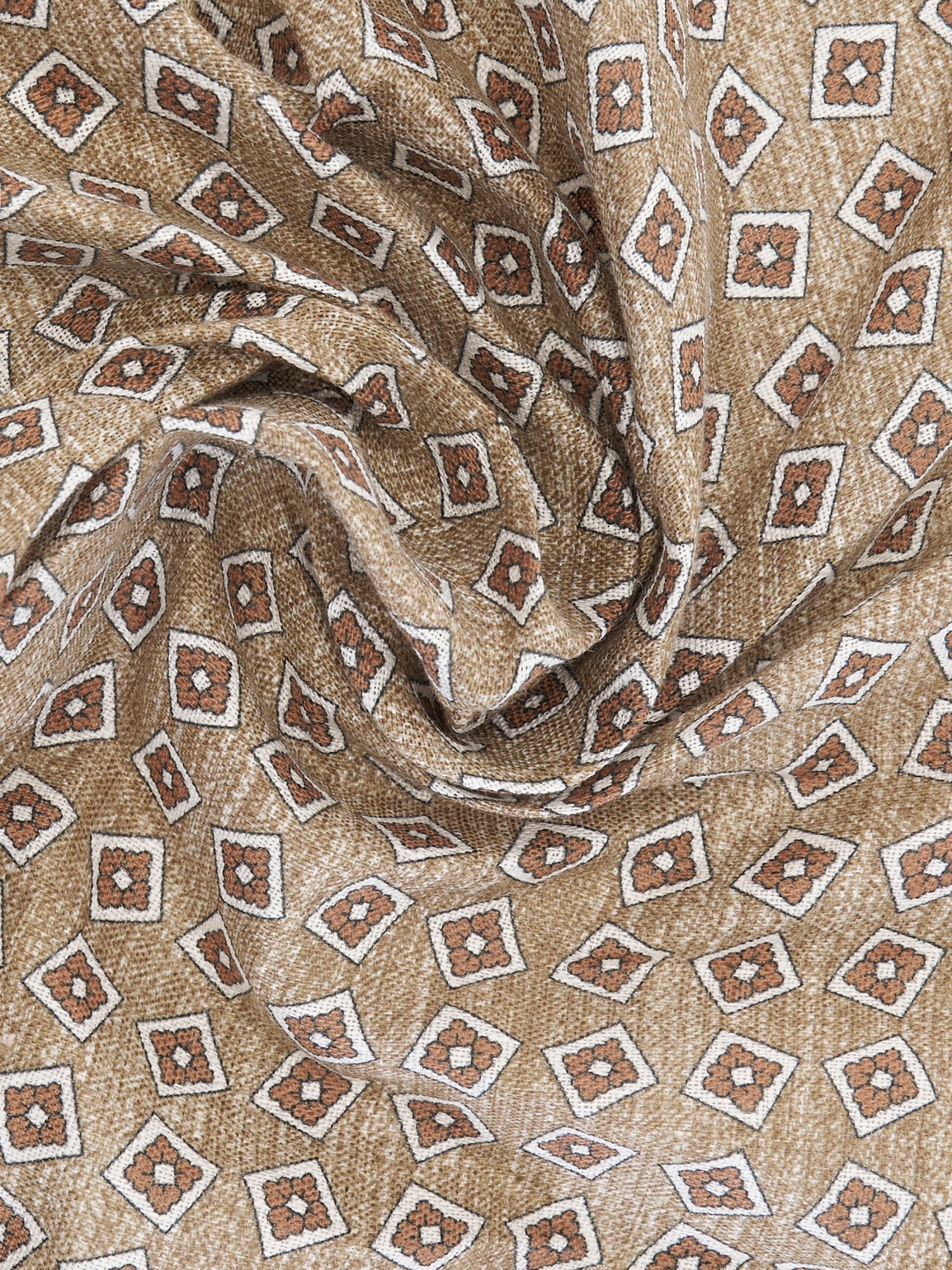 Платок нагрудный льняной с узором Cacharel — аксессуар для классических и деловых образов. Изготовлен из натурального льна. Дизайн оформлен повторяющимся геометрическим узором, равномерно распределёнными по поверхности.