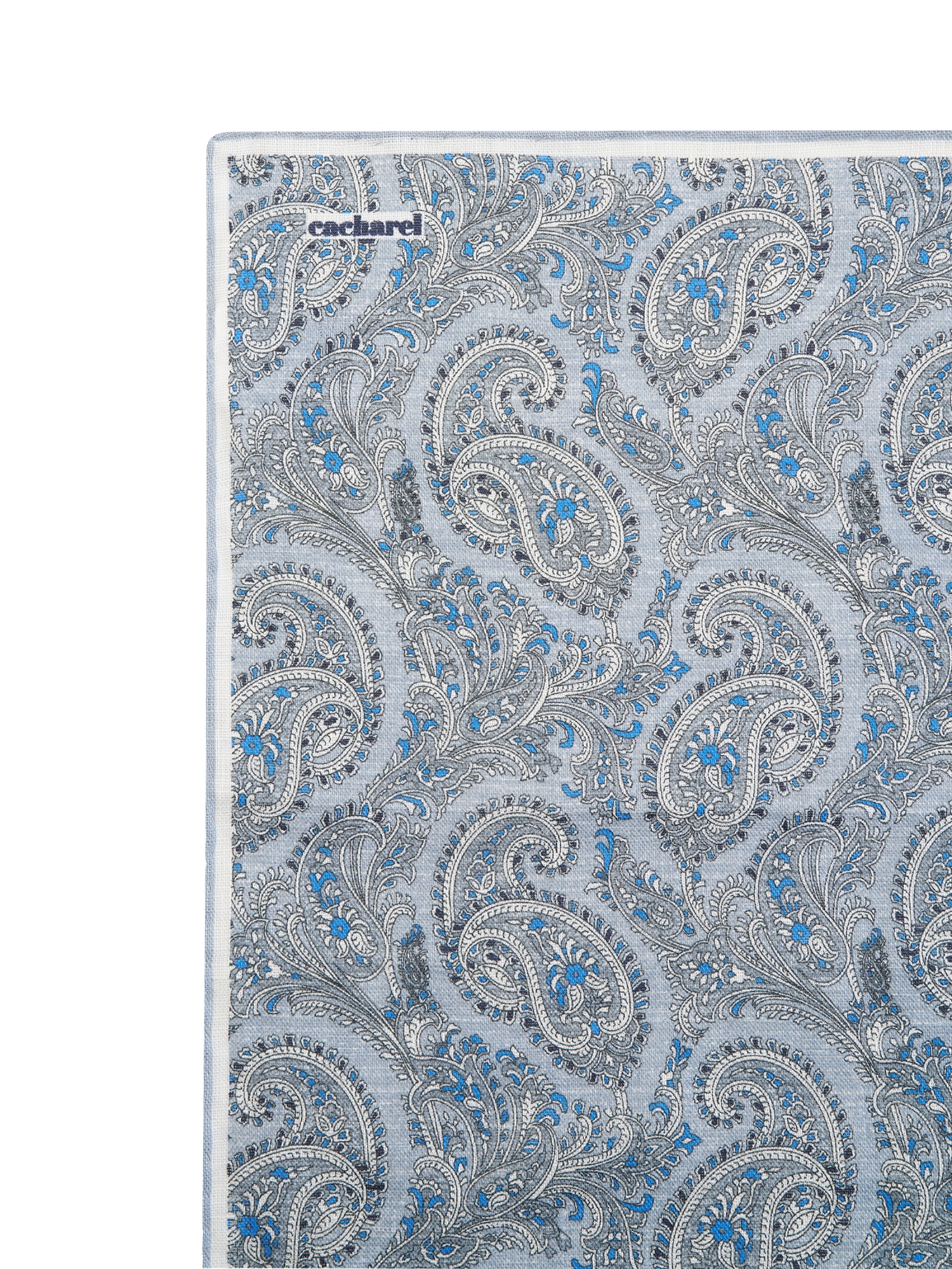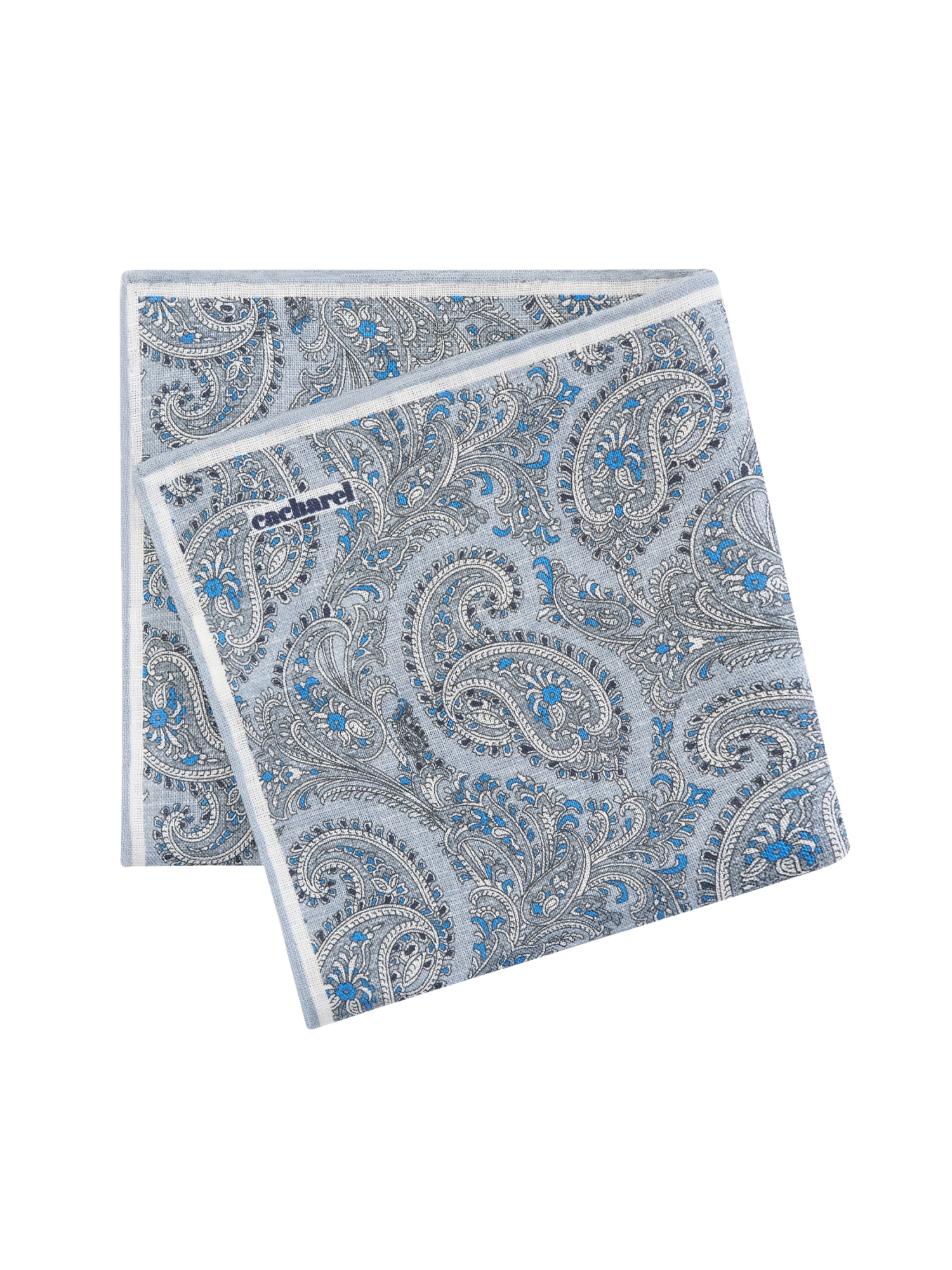 Платок нагрудный льняной с узором Cacharel — аксессуар для классических и деловых образов. Изготовлен из натурального льна. Дизайн оформлен декоративным узором пейсли с характерными завитками и растительными элементами.