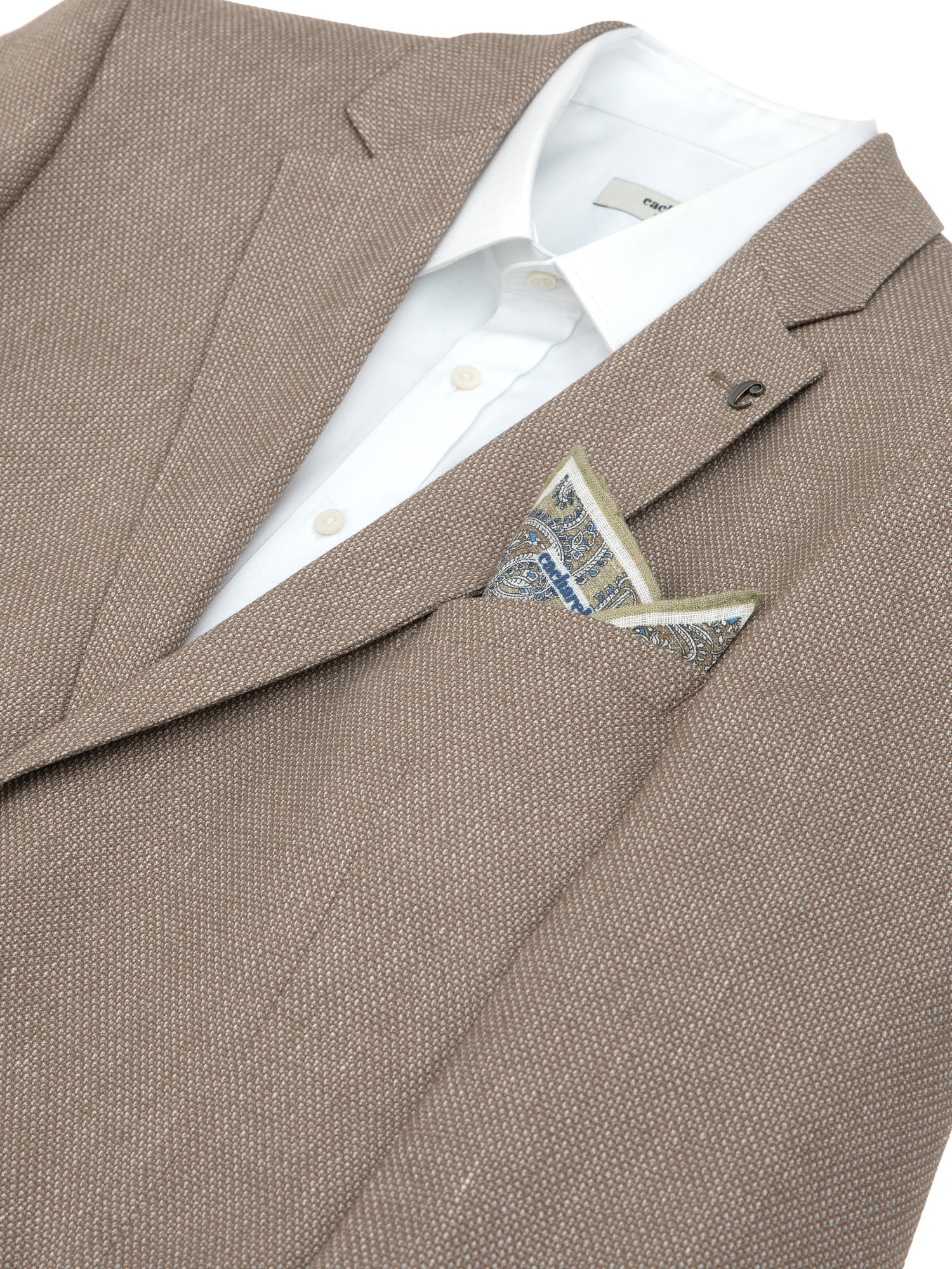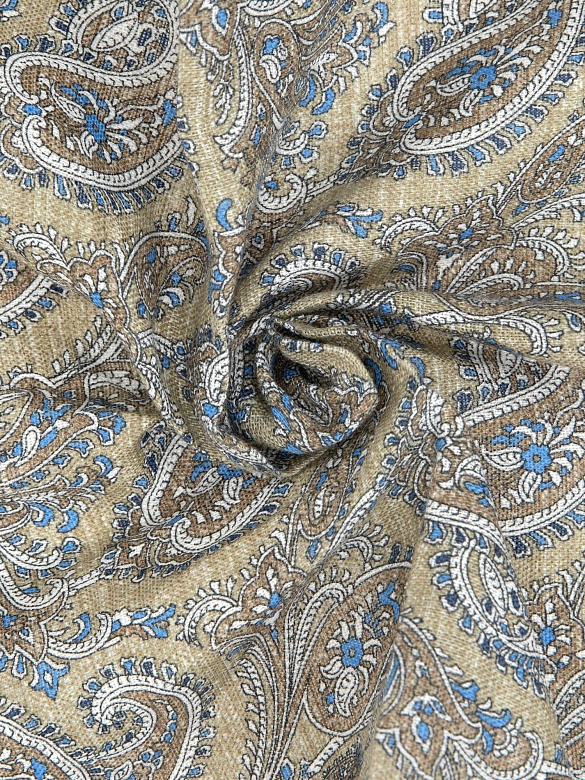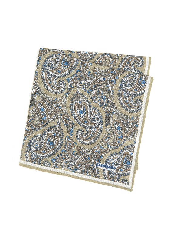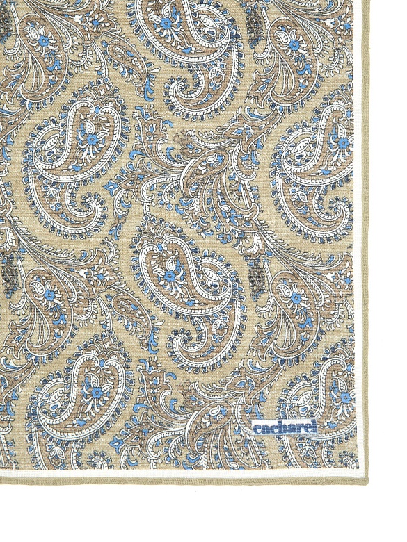 Платок нагрудный льняной с узором Cacharel — аксессуар для классических и деловых образов. Изготовлен из натурального льна. Дизайн оформлен декоративным узором пейсли с характерными завитками и растительными элементами.