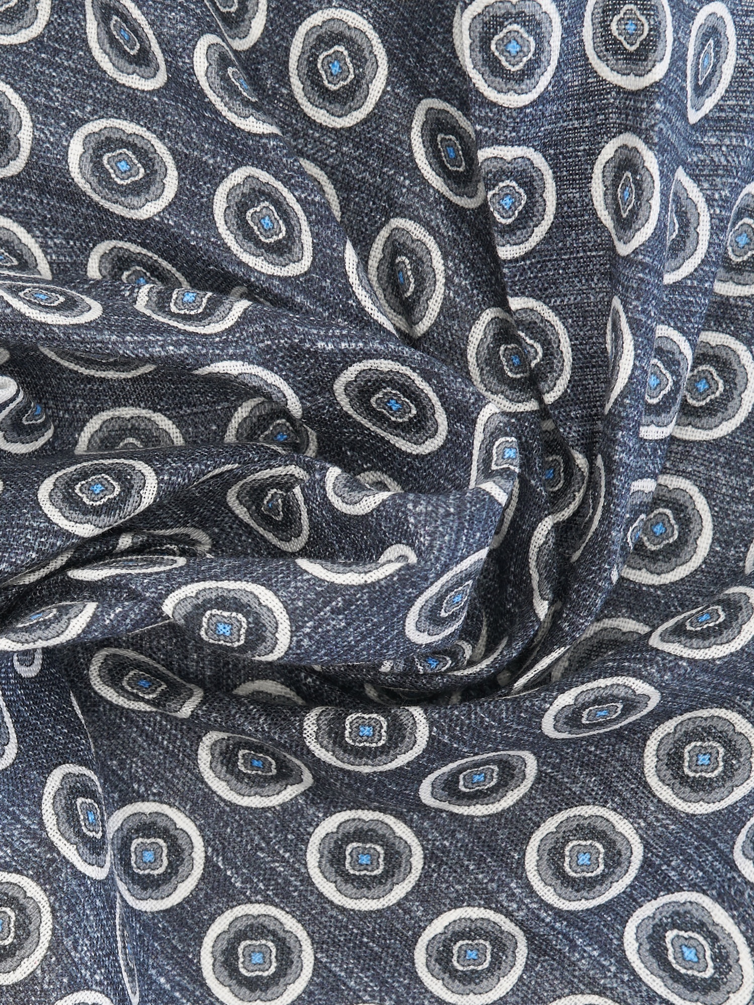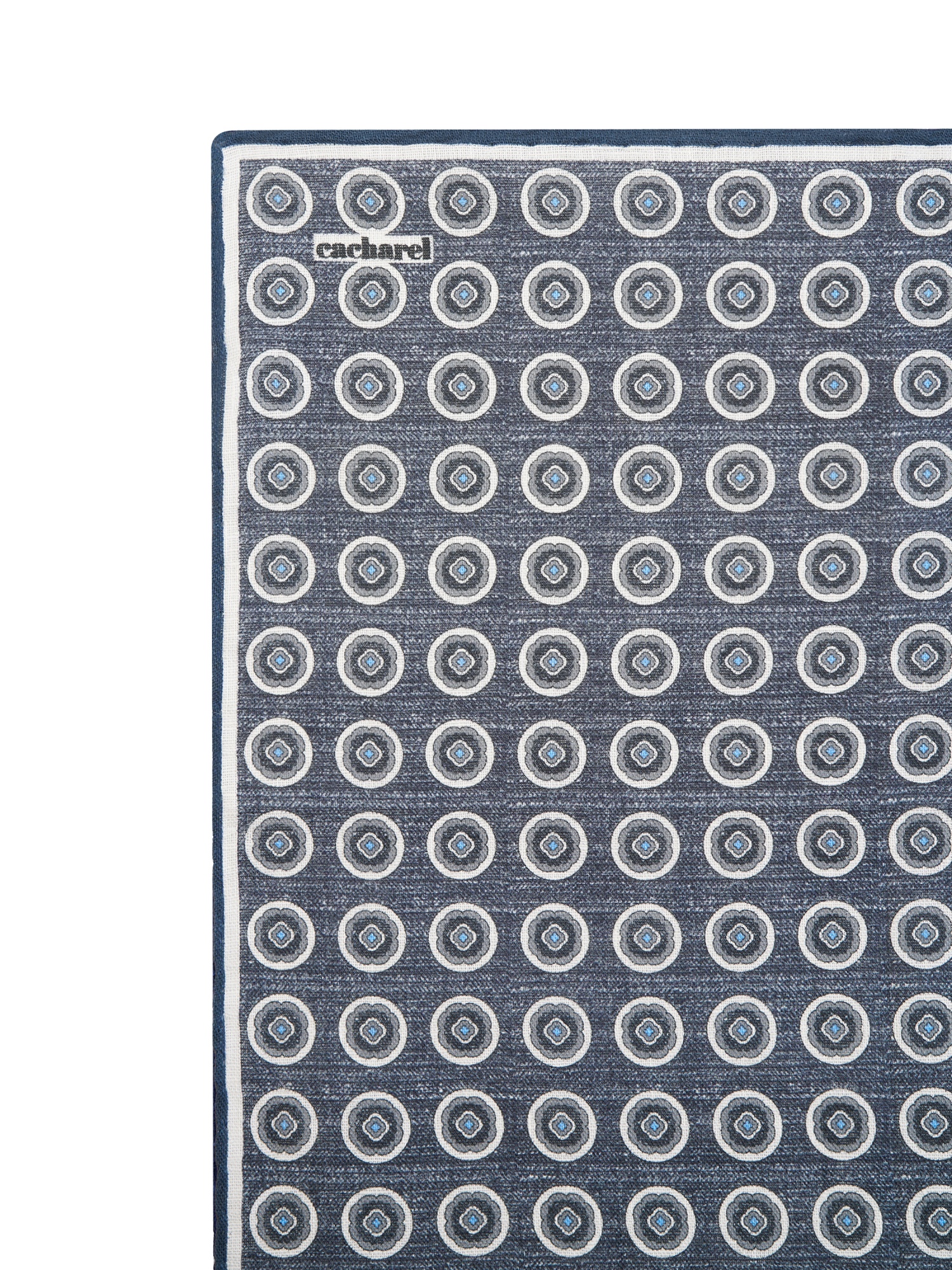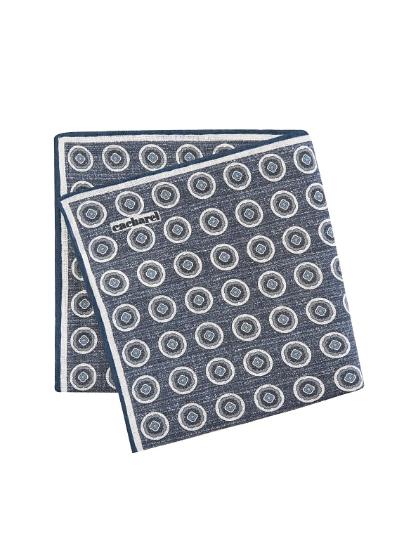 Платок нагрудный льняной с узором Cacharel — аксессуар для классических и деловых образов. Изготовлен из натурального льна. Дизайн украшен повторяющимся геометрическим узором в виде круглых мотивов.