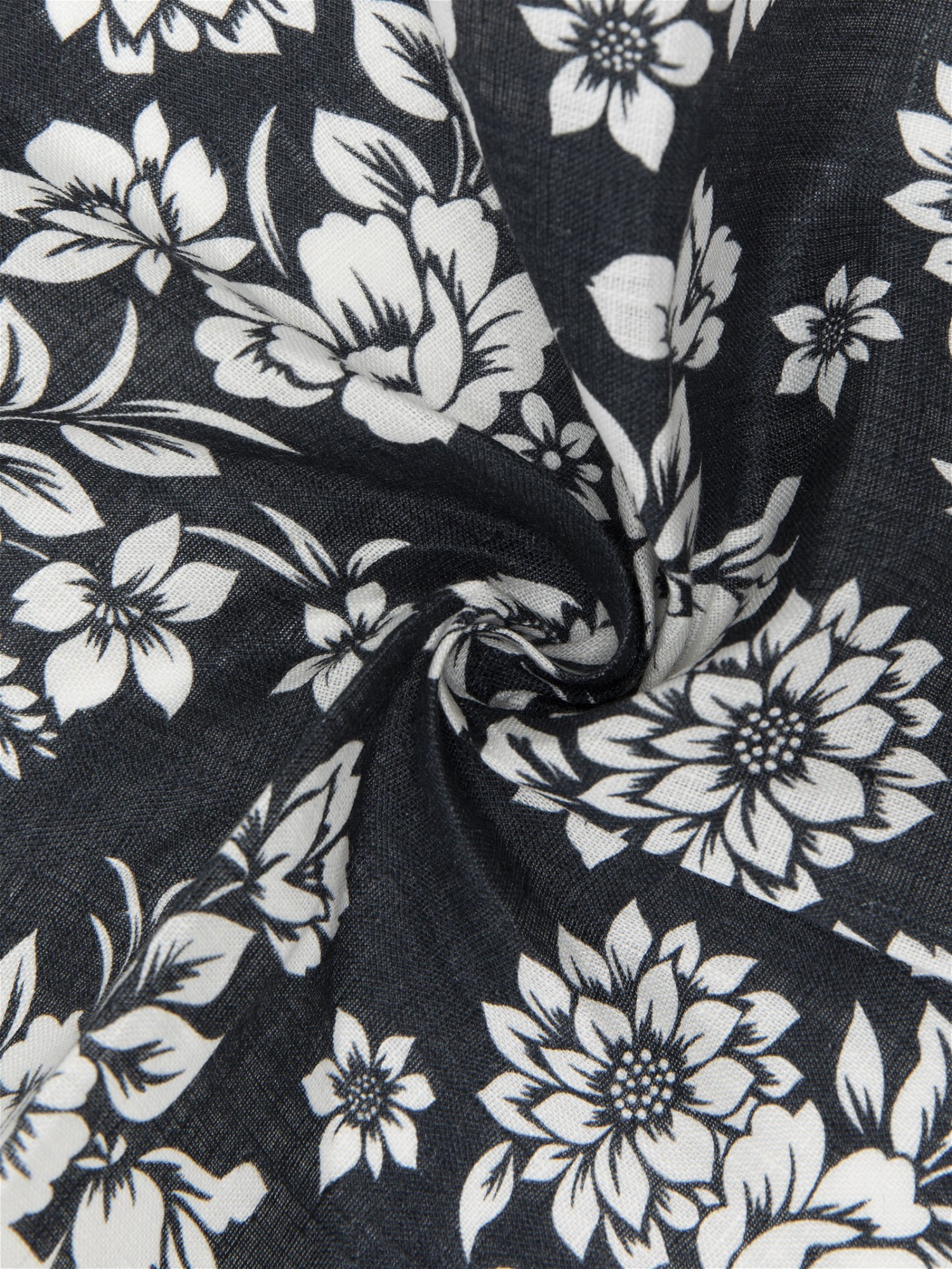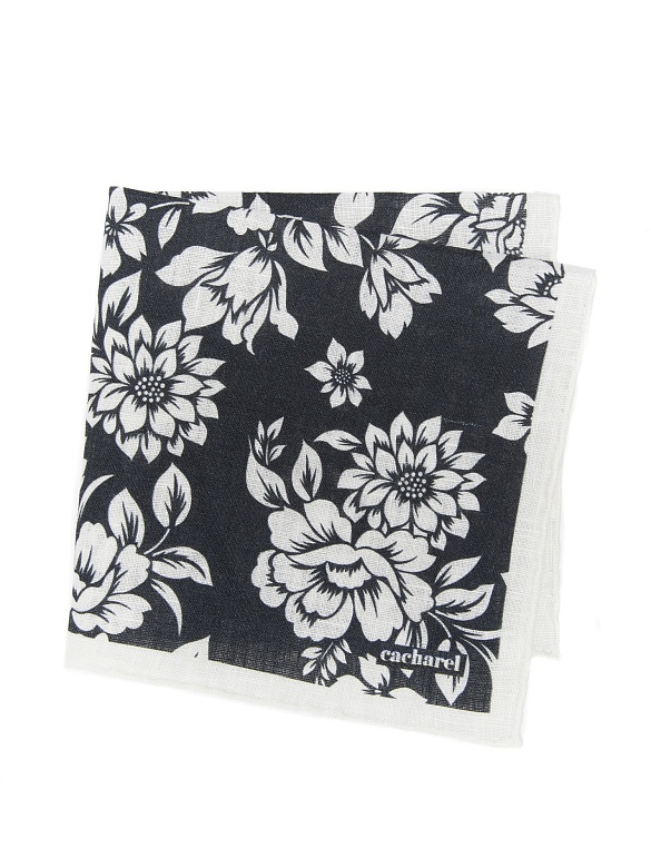 Платок нагрудный льняной с цветочными узорами Cacharel — аксессуар для классических и деловых образов из натурального льна. Оформлен контрастным цветочным узором.