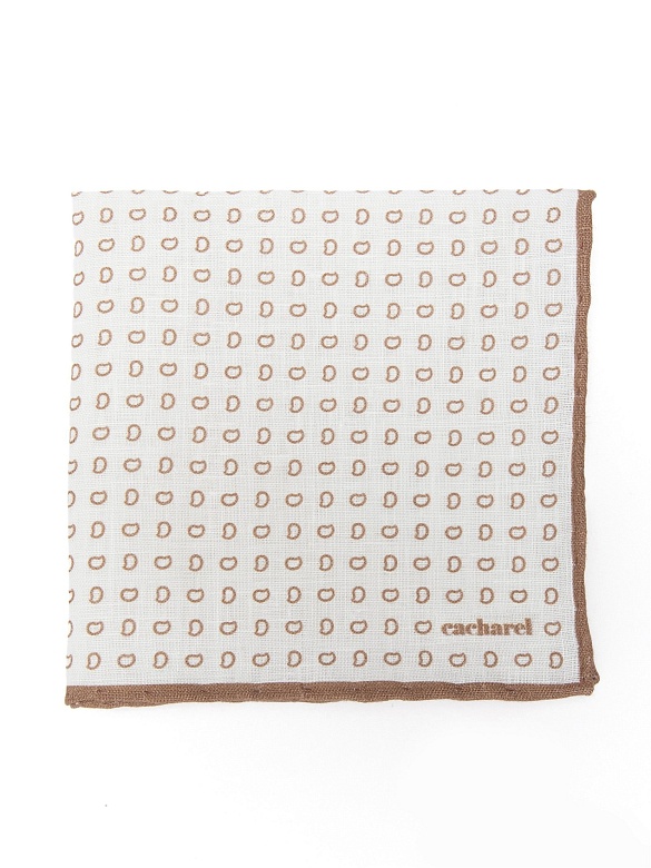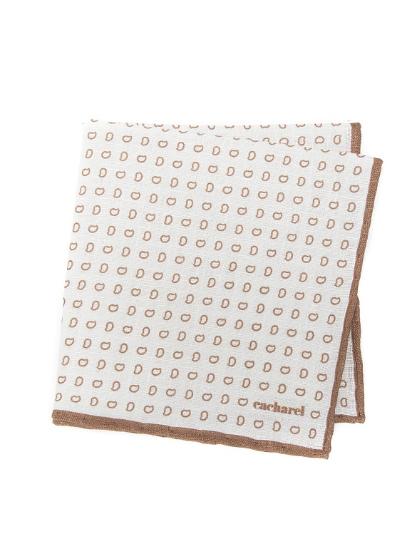 Платок нагрудный льняной с узором Cacharel — аксессуар для классических и деловых образов. Изготовлен из натурального льна. Дизайн оформлен мелким геометрическим узором в виде округлых элементов, дополненным контрастной окантовкой по краю.