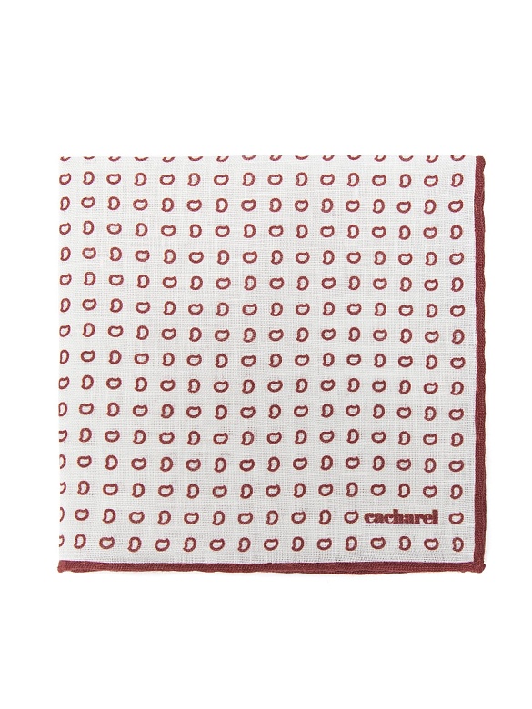 Платок нагрудный льняной с узором Cacharel — аксессуар для классических и деловых образов. Изготовлен из натурального льна. Дизайн оформлен мелким геометрическим узором в виде округлых элементов, дополненным контрастной окантовкой по краю.