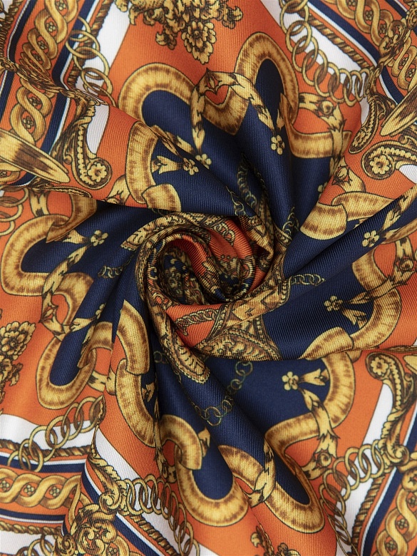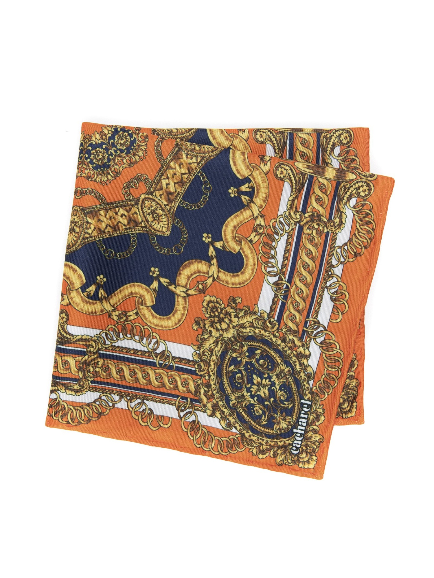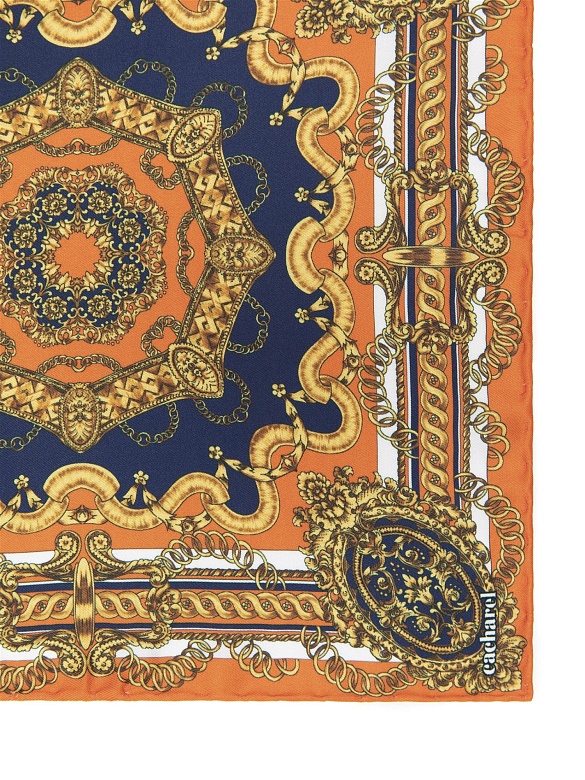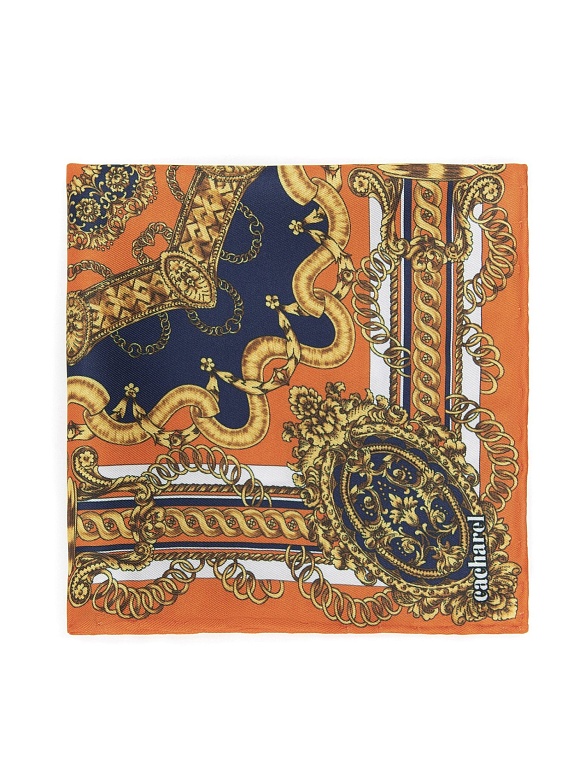 Платок нагрудный с орнаментом Cacharel — декоративный орнамент с мотивами цепей и классических элементов формирует выразительный внешний вид изделия и подчёркивает его характер.
