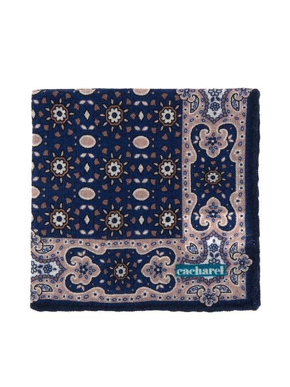 Платок нагрудный Cacharel - из мягкой натуральной шерсти. Богатый орнамент с тонкими деталями и глубокими оттенками делает его идеальным акцентом для классического костюма, блейзера или пальто.
