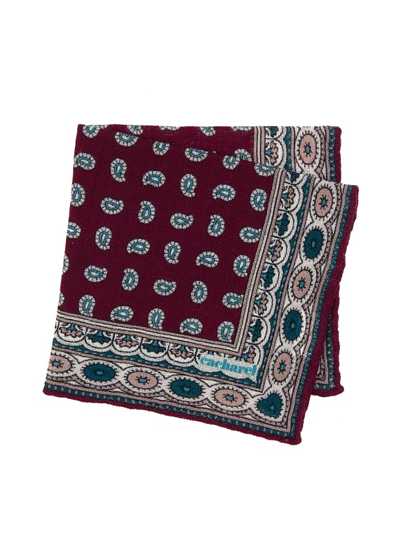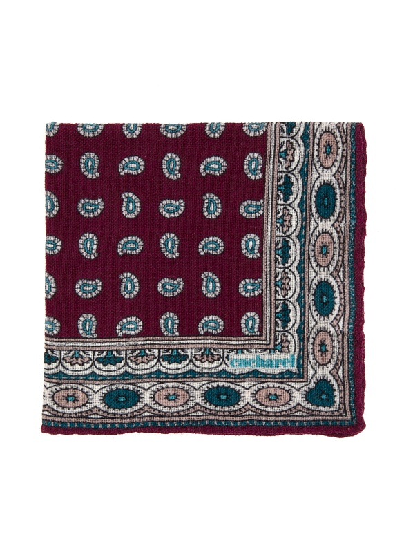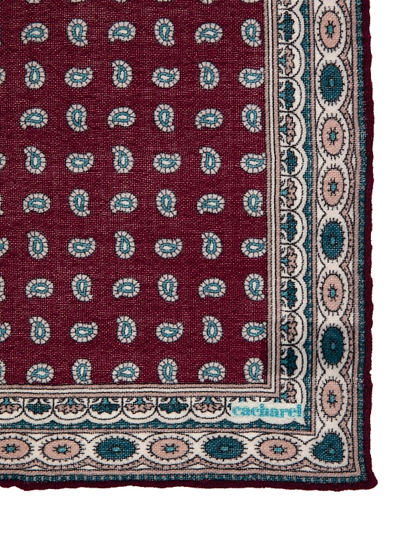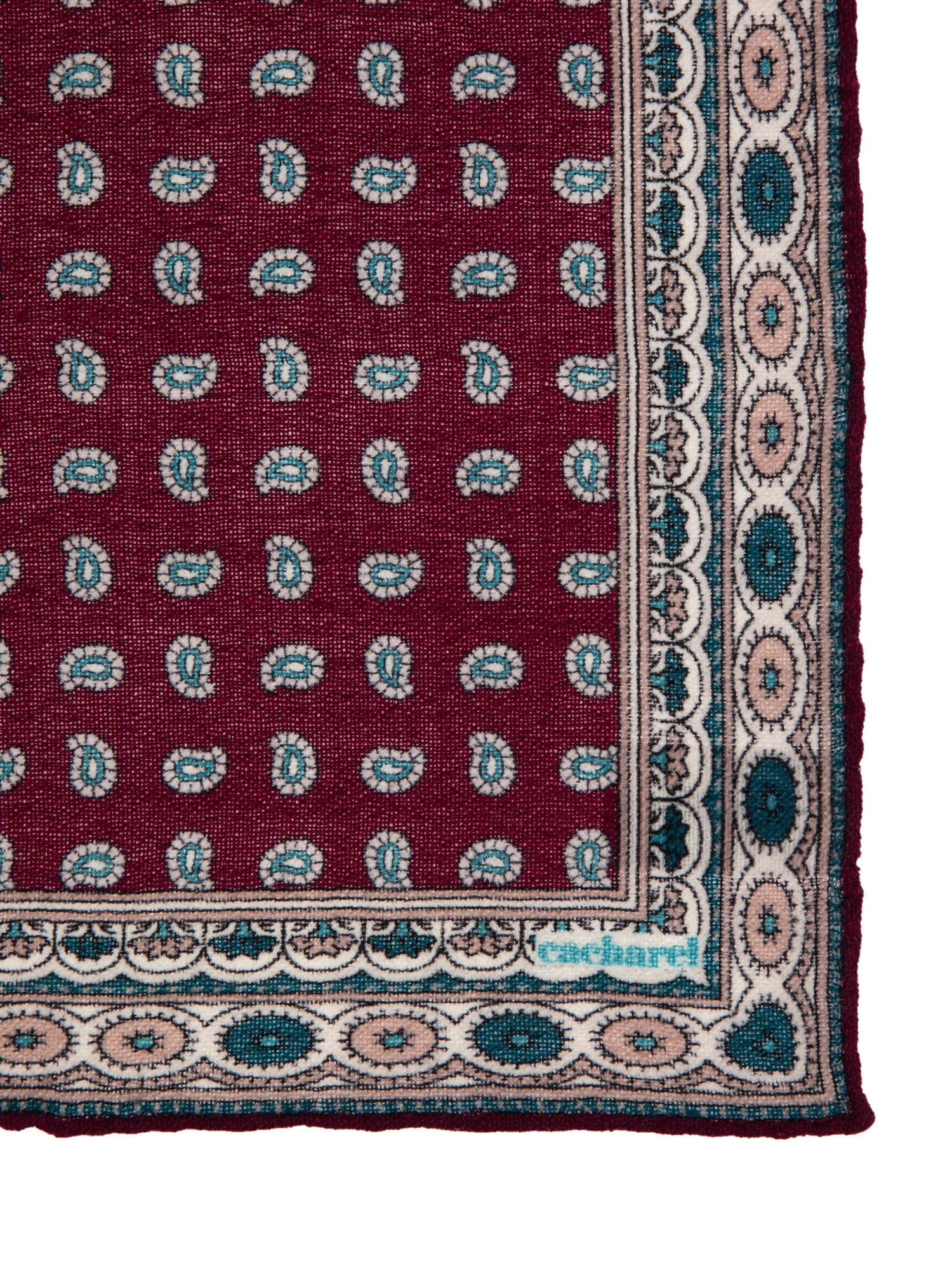 Платок нагрудный Cacharel - из мягкой натуральной шерсти. Богатый орнамент с тонкими деталями и глубокими оттенками делает его идеальным акцентом для классического костюма, блейзера или пальто.