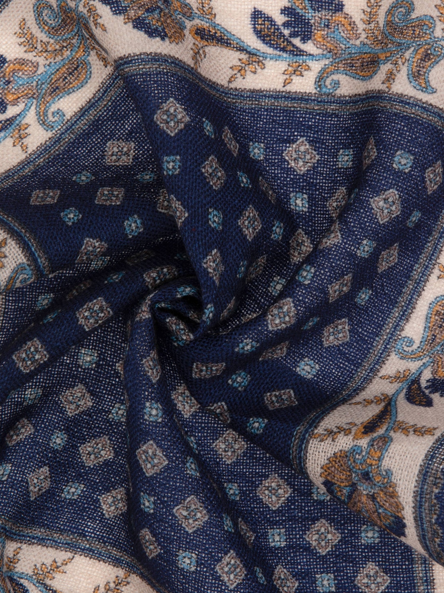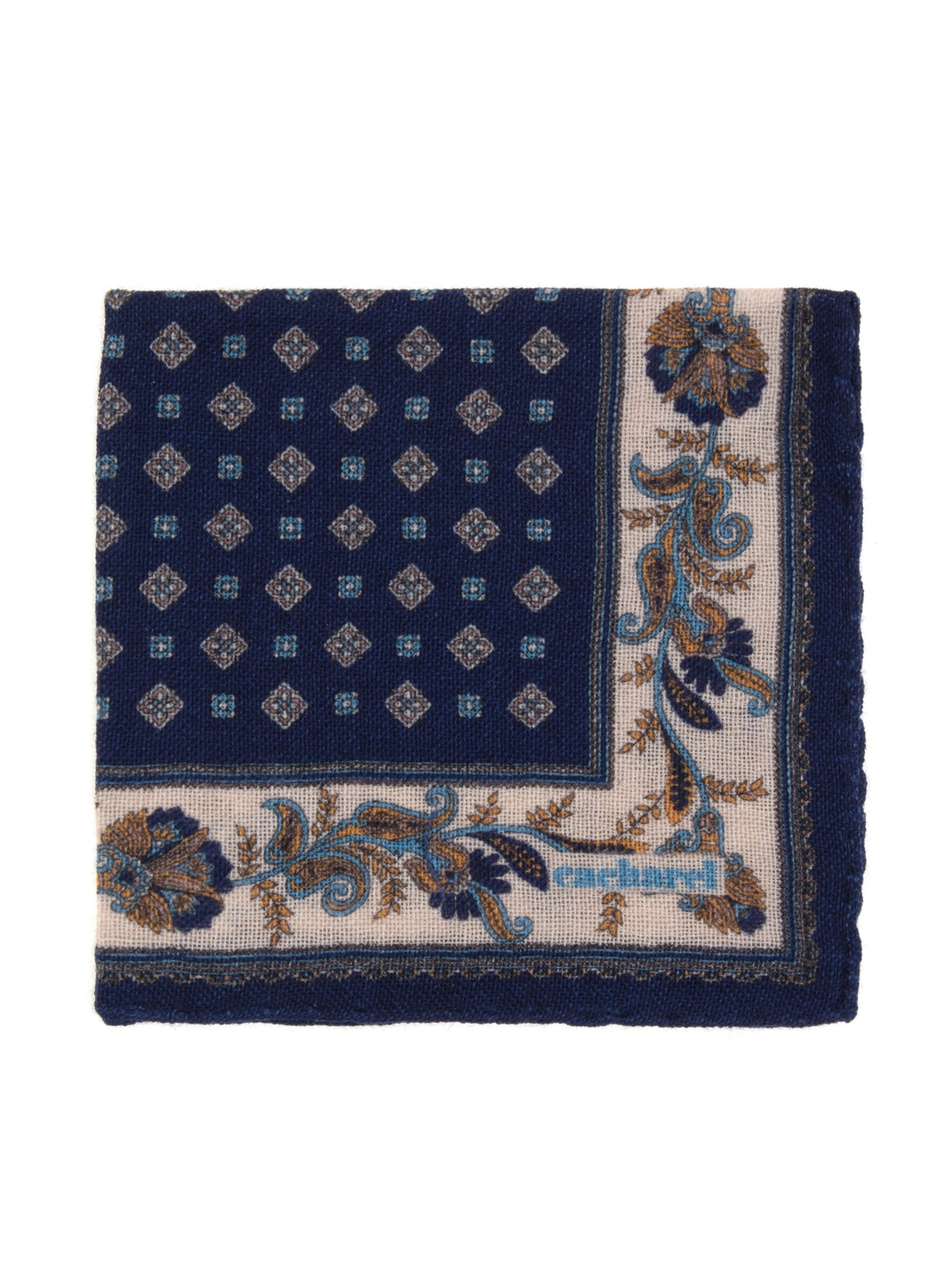 Платок нагрудный Cacharel - натуральная шерсть делает изделие мягким, тёплым и приятным на ощупь, а сочетание мелкого геометрического узора с декоративной рамкой придаёт дизайну атмосферу классики и благородства.