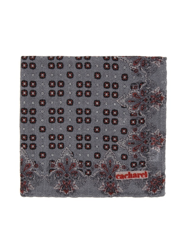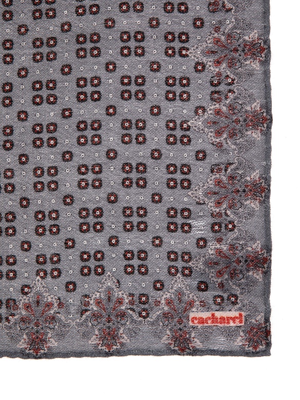 Платок нагрудный Cacharel — лаконичный геометрический мотив, дополненный изящной орнаментальной окантовкой, создаёт утончённый, но в то же время насыщенный визуальный эффект.