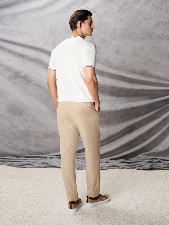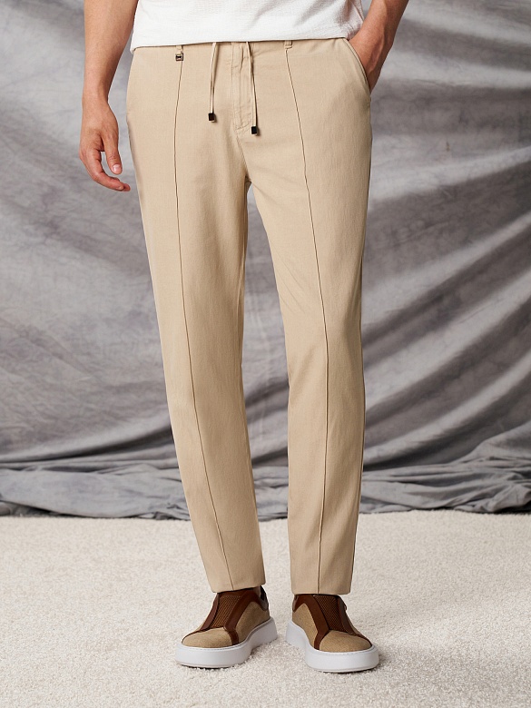 Эти брюки подходят для повседневной носки. Отличаются непринужденным покроем и комфортом. Модель на кулиске обеспечивает удобную регулировку посадки, что прекрасно подходит для активного дня или отдыха. Универсальное решение для создания различных образов. Легкость и практичность гармонично сочетаются в изделии.Материалы способствуют комфорту и долговечности, а качественный пошив гарантирует продолжительную эксплуатацию. Практичные детали позволяют удобно хранить мелкие предметы под рукой, добавляя функциональности дизайну. Стильная модель подчеркнет индивидуальность и позволит выделиться на городских улицах или мероприятиях.Благодаря свободному крою обеспечивается свобода движения в течение всего дня. Это делает одежду идеальной для разнообразных занятий — от прогулок до встреч с друзьями или работы. Подходят к различным стилям обуви и верхней одежды, что расширяет возможности комбинирования аксессуаров и предметов гардероба.
