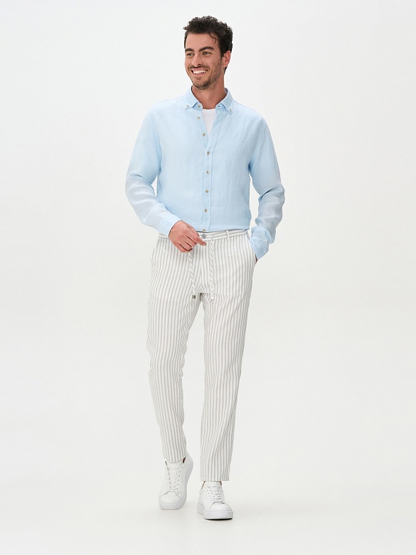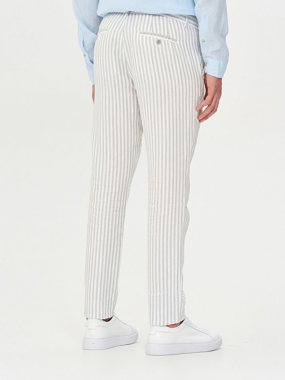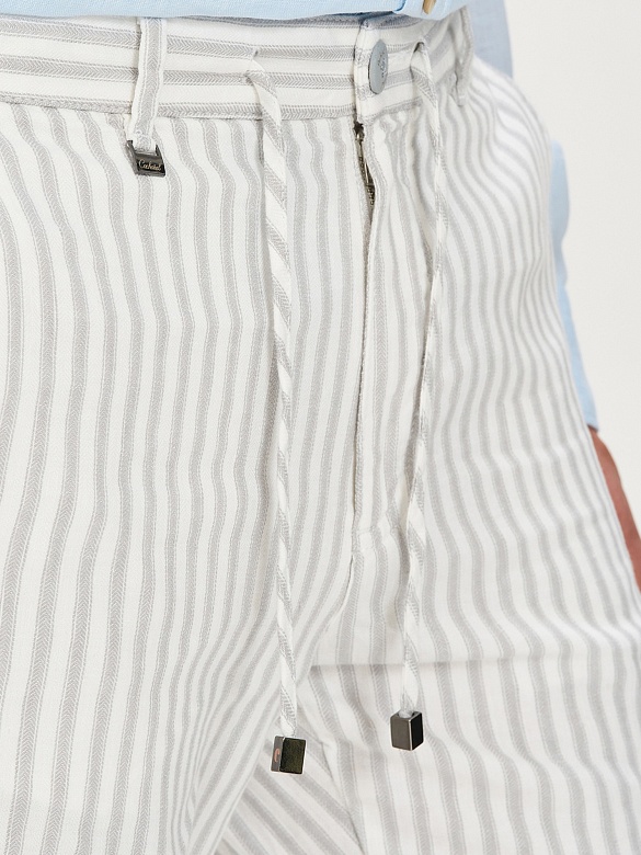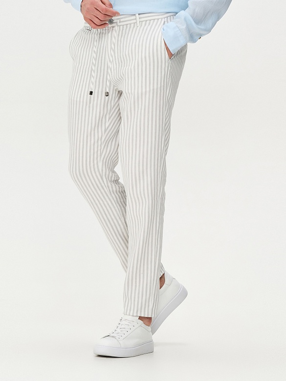 Брюки в полоску на кулиске из смеси хлопка и льна зауженные