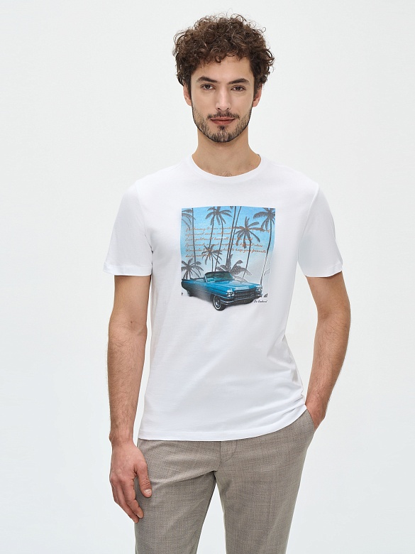 Футболка с принтом "авто под пальмами"