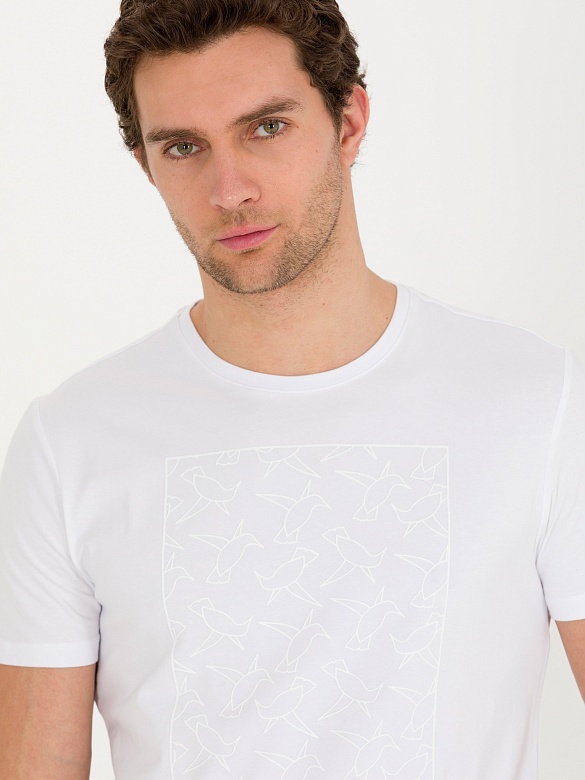 Футболка Cacharel с принтом, который выступает акцентным элементом дизайна.