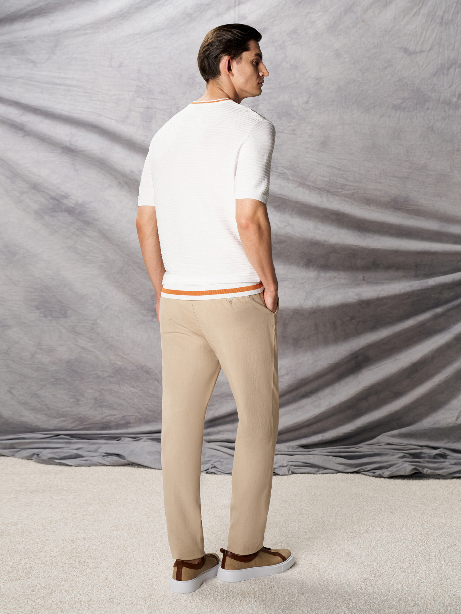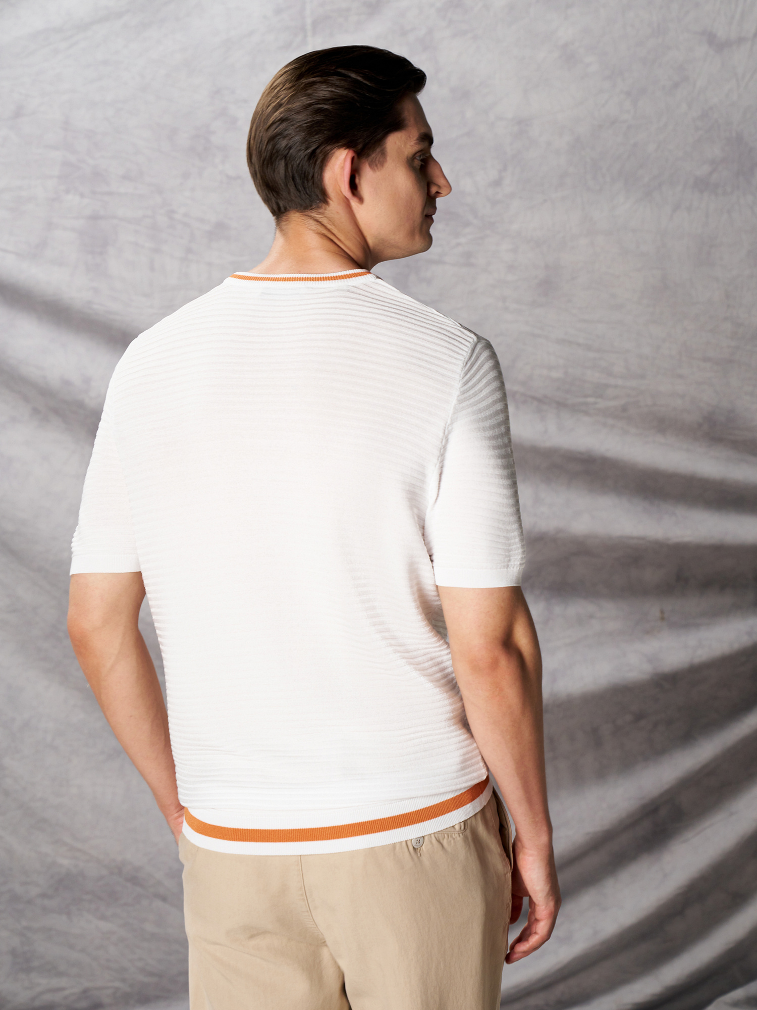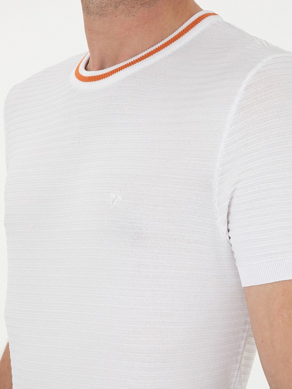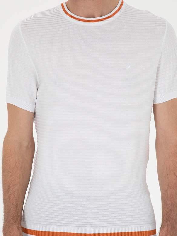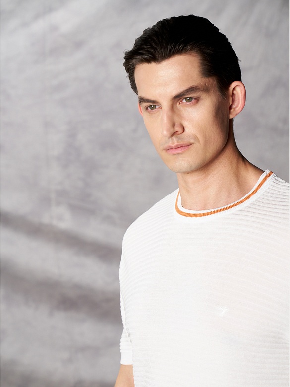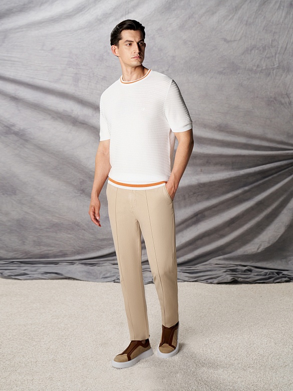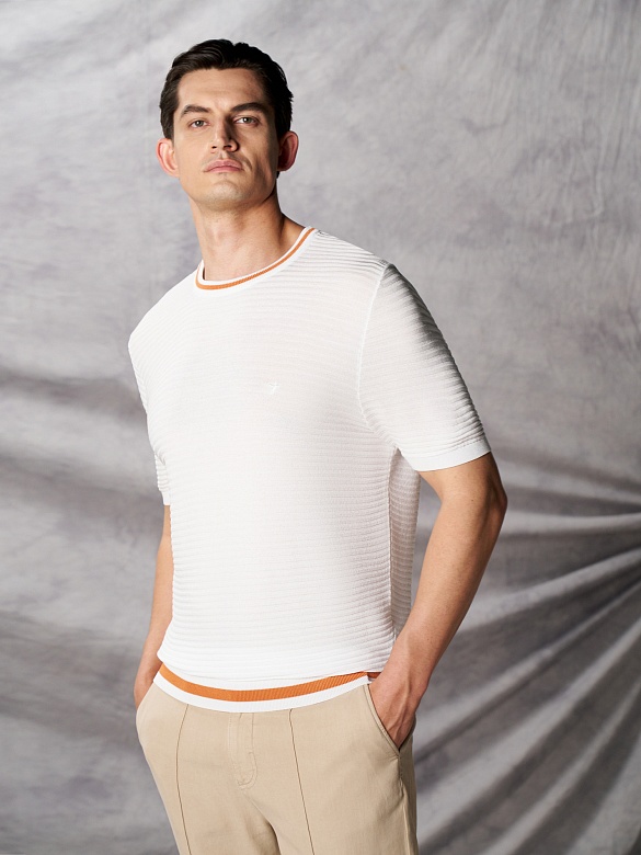 Эта футболка выполнена из высококачественного трикотажа. Модель отвечает современным требованиям комфорта и стиля. Приятная к телу ткань обеспечивает удобство при носке в любое время года. Изделие отличается изысканным дизайном, подходящим для различных случаев. Сочетание простоты и элегантности позволяет легко создавать разнообразные образы. Футболка обладает хорошей воздухопроницаемостью, что способствует оптимальной терморегуляции тела. Благодаря уникальной технологии изготовления достигается высокая степень устойчивости к износу и деформации. Поддерживает первоначальный вид даже после длительного использования и многократных стирок. Данная модель прекрасно сочетается с различными элементами гардероба, создавая гармоничные комплекты для повседневной носки или особых мероприятий. Лаконичный фасон подчеркивает индивидуальность владельца и выделяет его среди окружения. В таком предмета одежды каждая деталь продумана до мелочей.