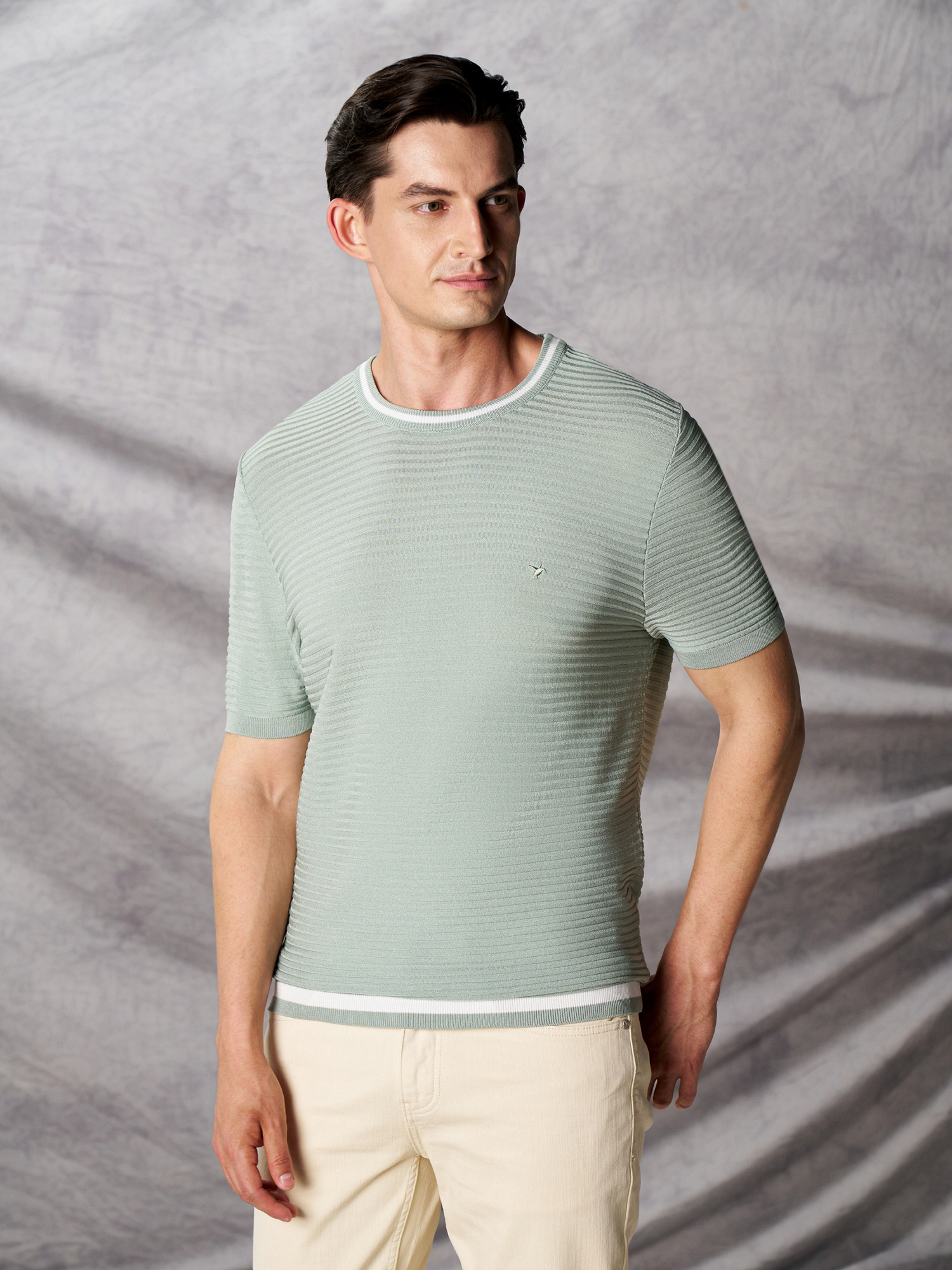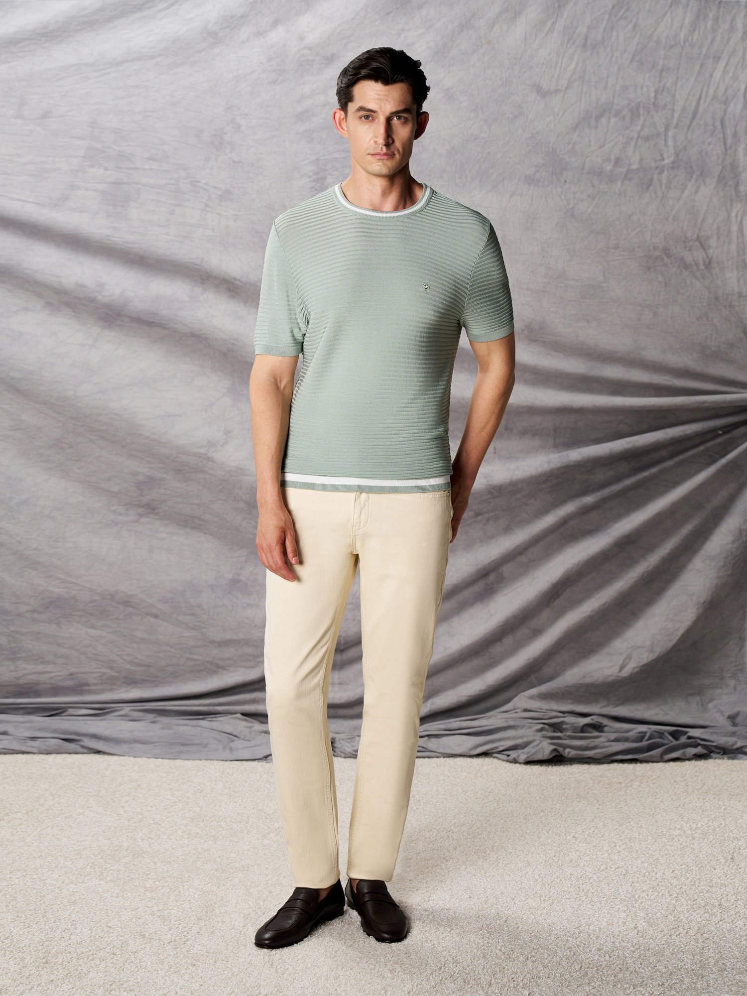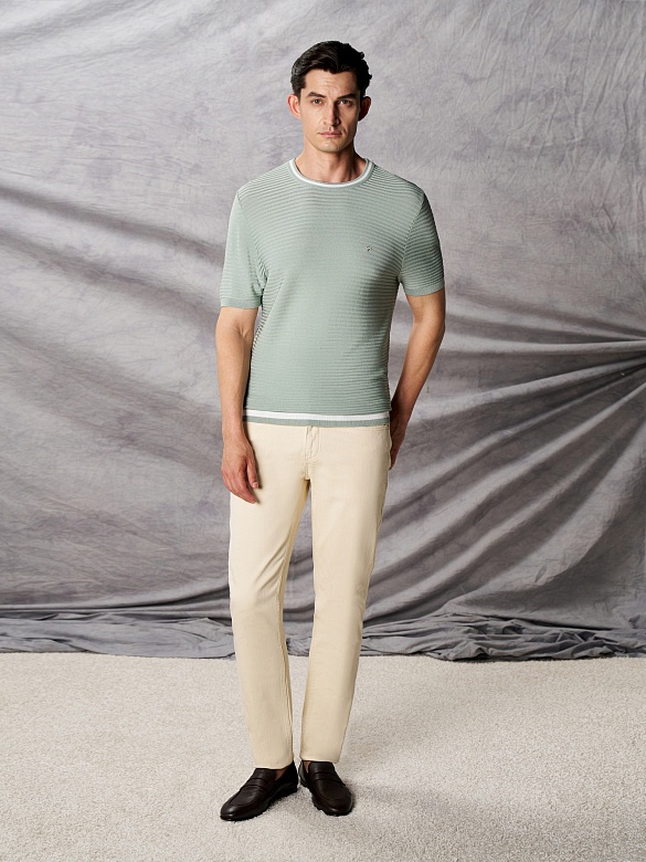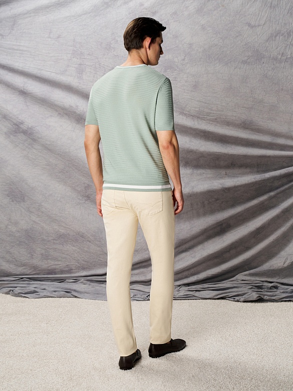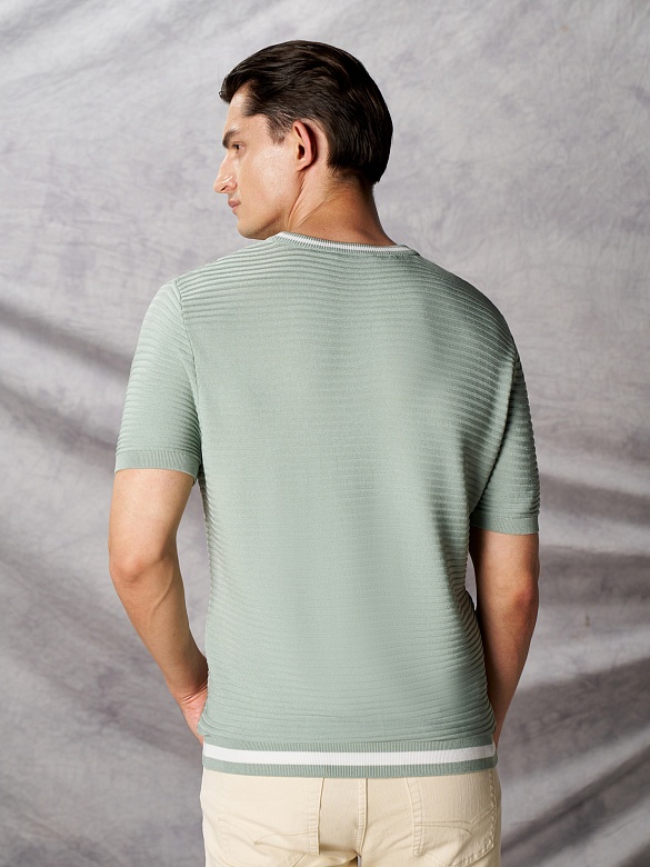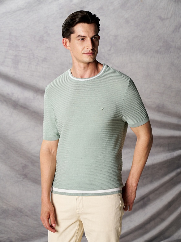 Эта футболка выполнена из высококачественного трикотажа. Модель отвечает современным требованиям комфорта и стиля. Приятная к телу ткань обеспечивает удобство при носке в любое время года. Изделие отличается изысканным дизайном, подходящим для различных случаев. Сочетание простоты и элегантности позволяет легко создавать разнообразные образы. Футболка обладает хорошей воздухопроницаемостью, что способствует оптимальной терморегуляции тела. Благодаря уникальной технологии изготовления достигается высокая степень устойчивости к износу и деформации. Поддерживает первоначальный вид даже после длительного использования и многократных стирок. Данная модель прекрасно сочетается с различными элементами гардероба, создавая гармоничные комплекты для повседневной носки или особых мероприятий. Лаконичный фасон подчеркивает индивидуальность владельца и выделяет его среди окружения. В таком предмета одежды каждая деталь продумана до мелочей.