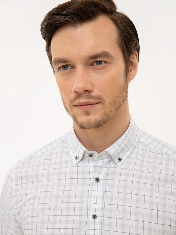 Рубашка Cacharel в клетку. Клетка придаёт модели классический и сдержанный внешний вид. Рубашка выполнена с воротником на пуговицах, который помогает сохранять форму, и застёжкой на пуговицы.