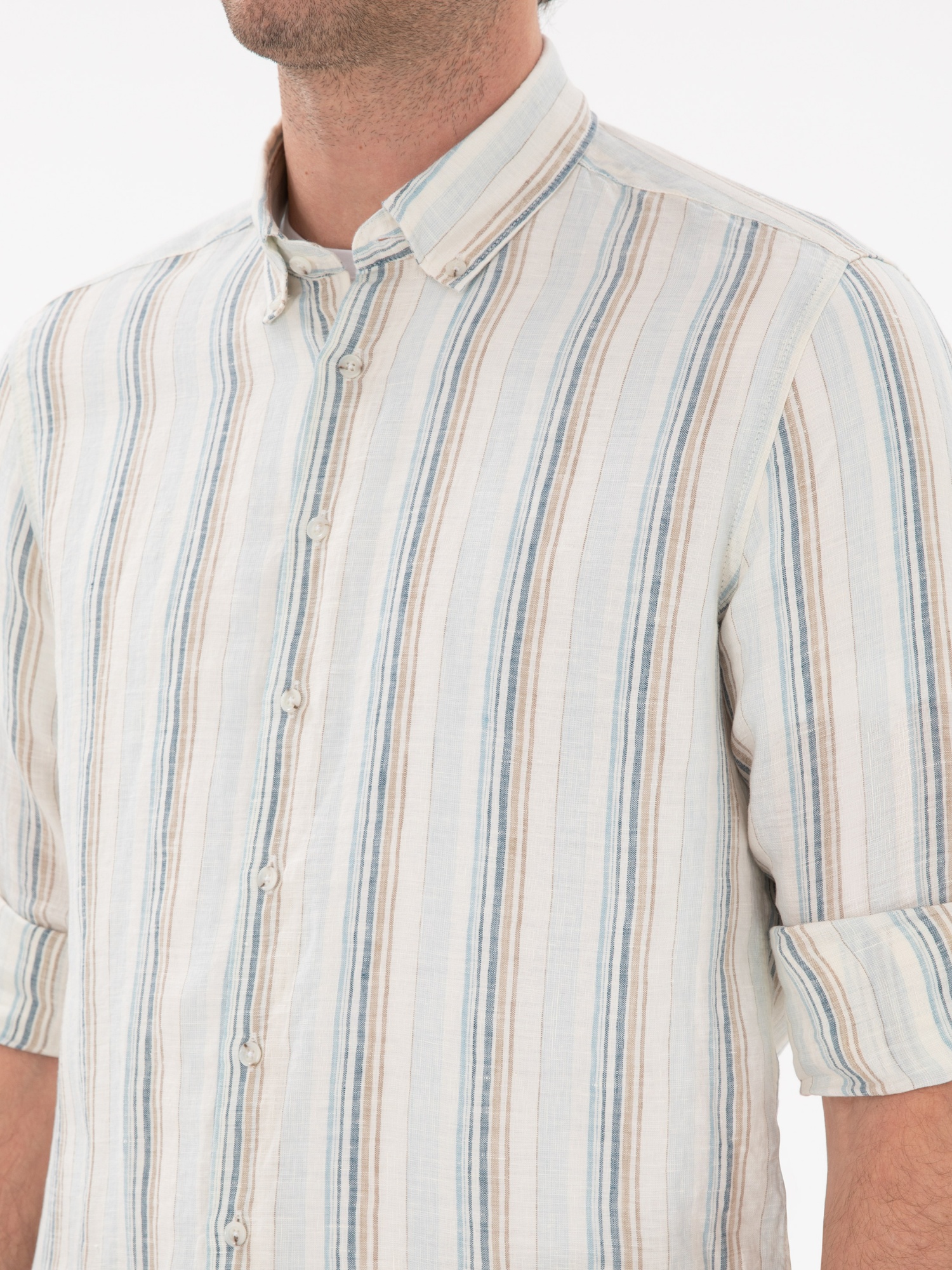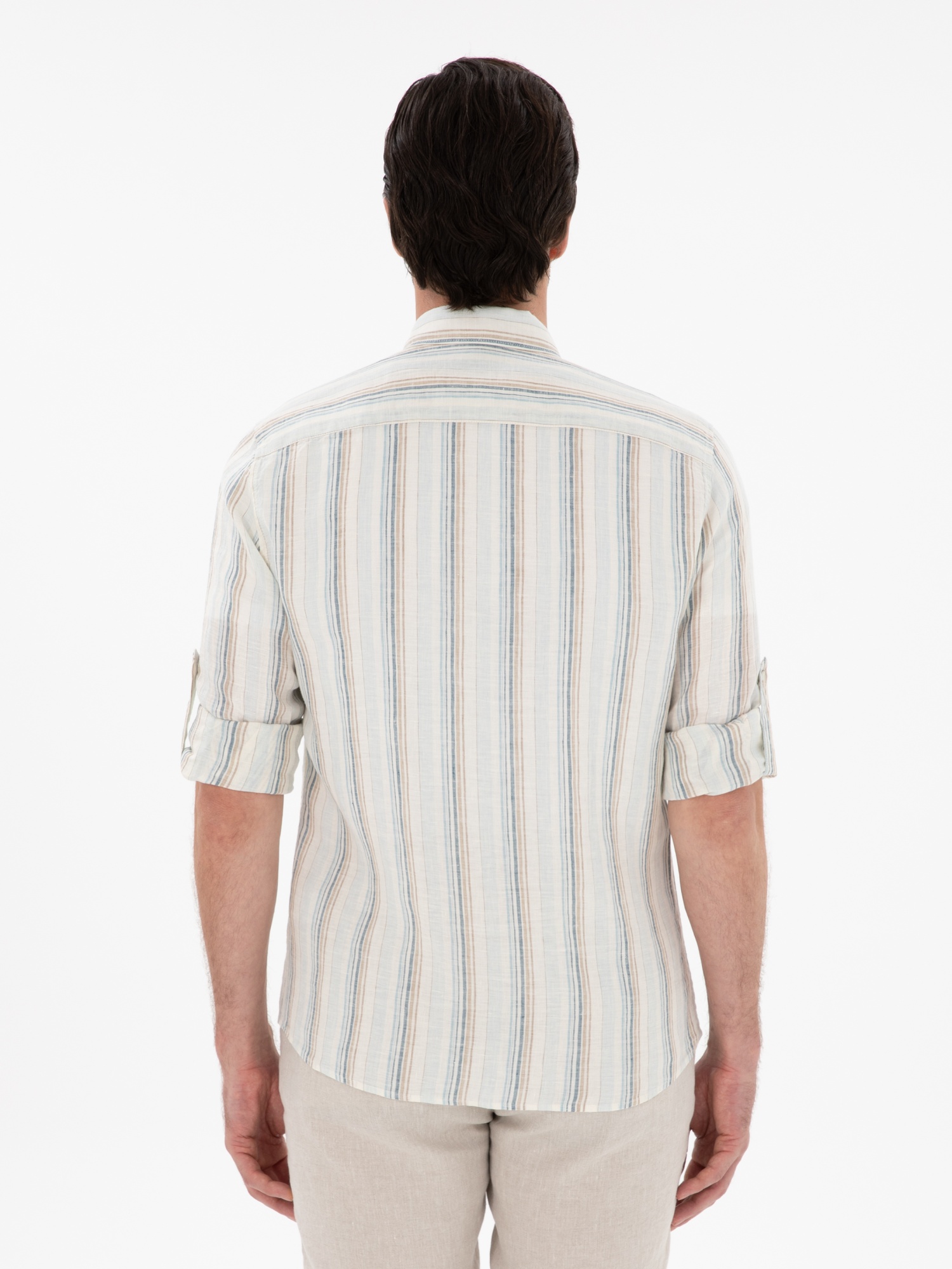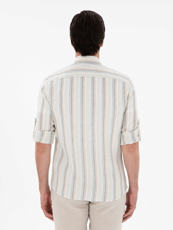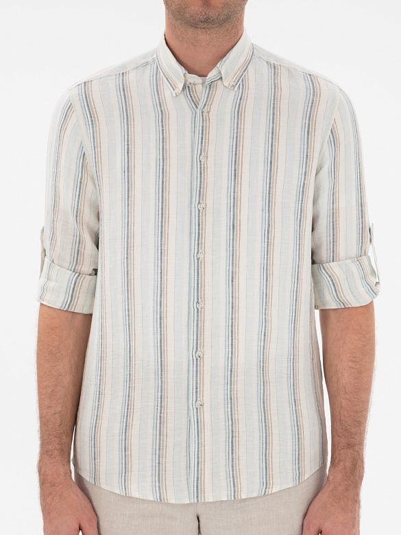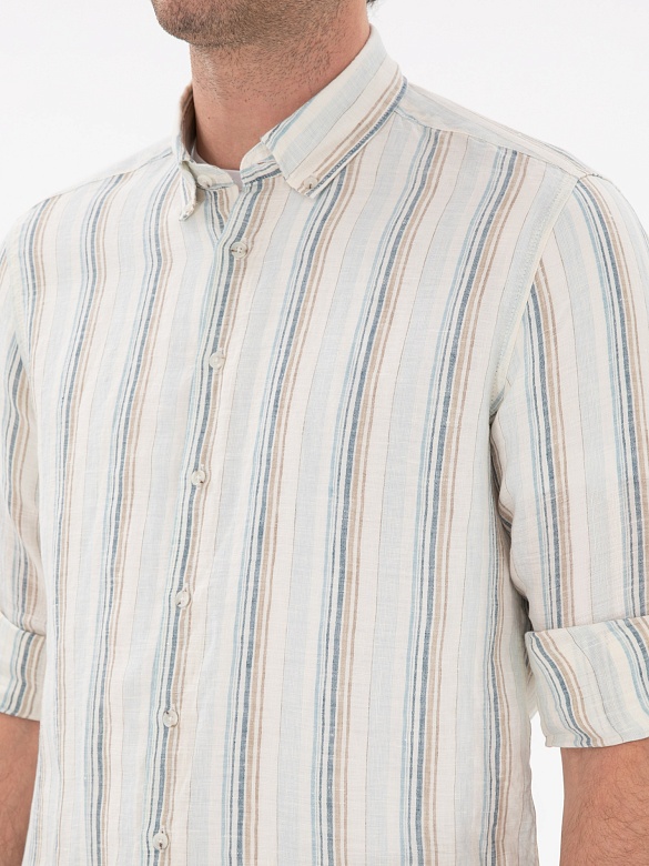 Рубашка в полоску льняная приталенная