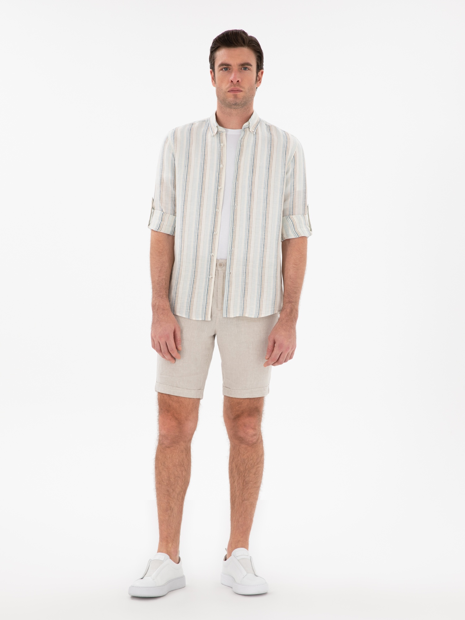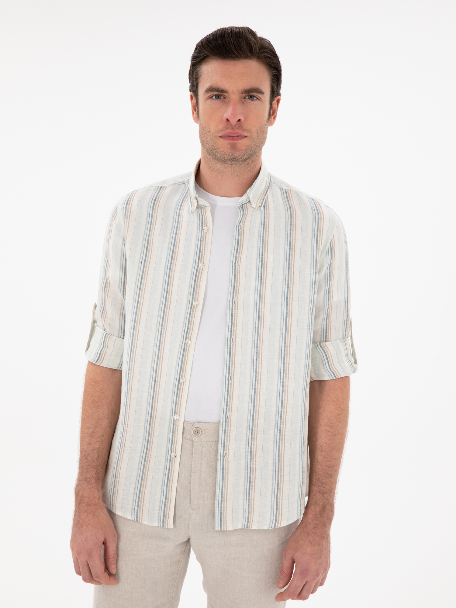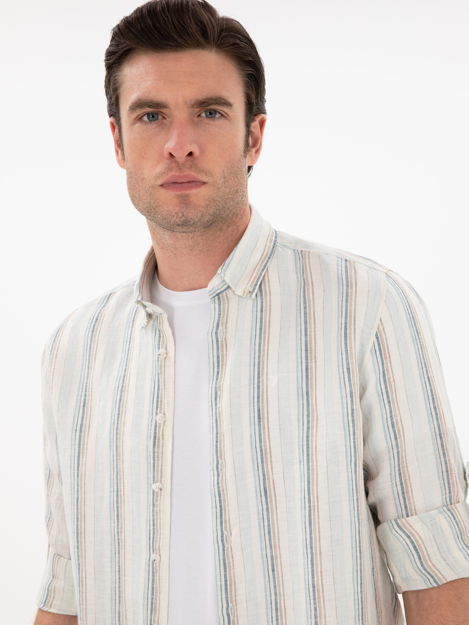 Рубашка в полоску льняная приталенная